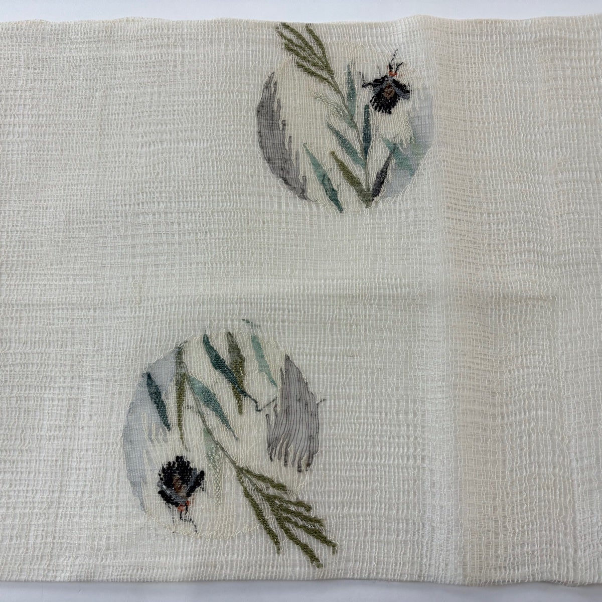 名古屋帯 名品 落款あり 小倉建亮 枝花 絞り クリーム 正絹
