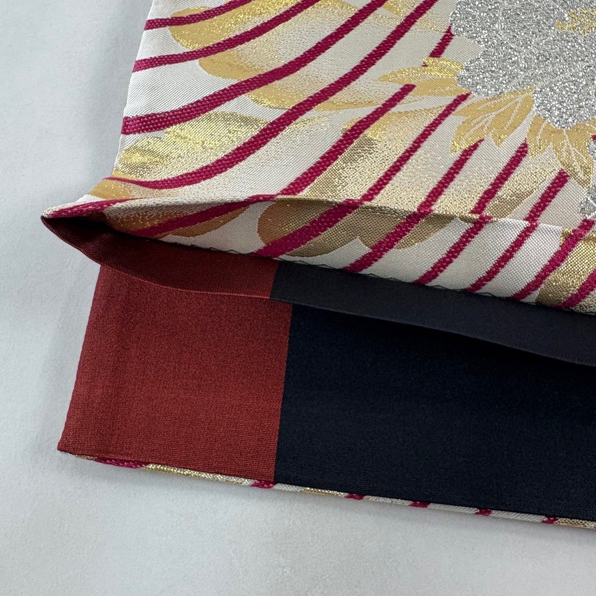50%OFF 袋名古屋帯 名品 縞 クリーム 正絹 K50