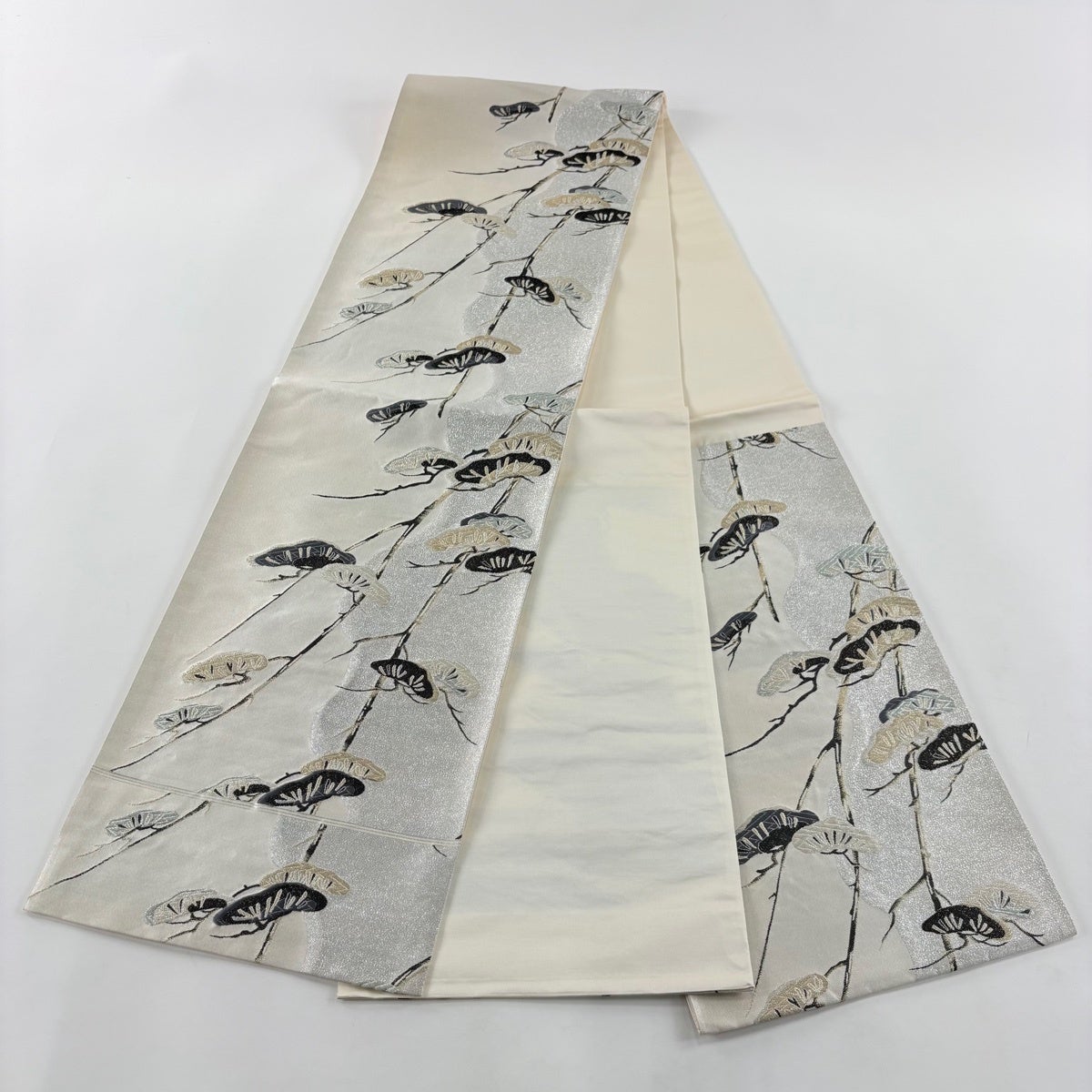 【美品】 袋帯 名品 松 唐織 金糸 クリーム 六通 正絹