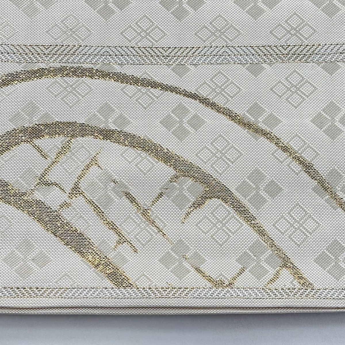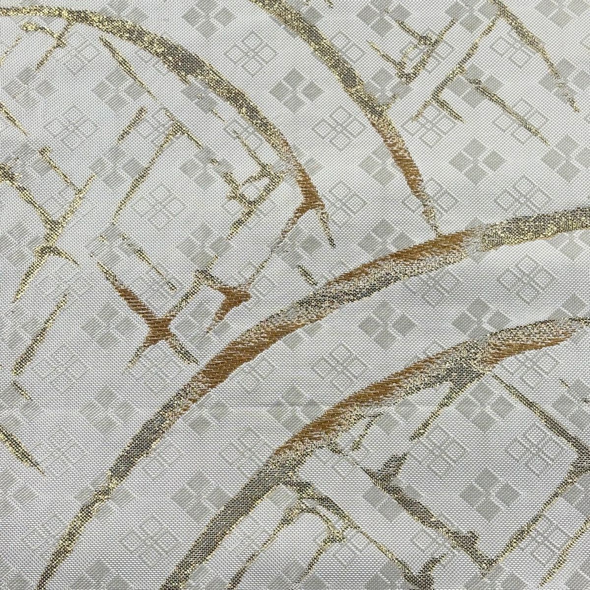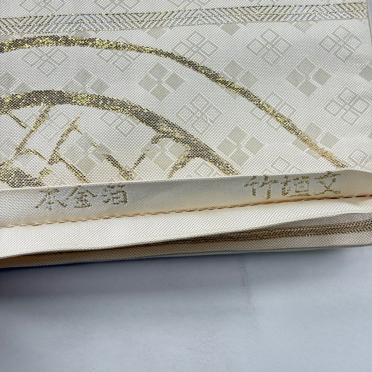 袋帯 秀品 竹垣文 菱 金糸 箔 クリーム お太鼓柄 正絹