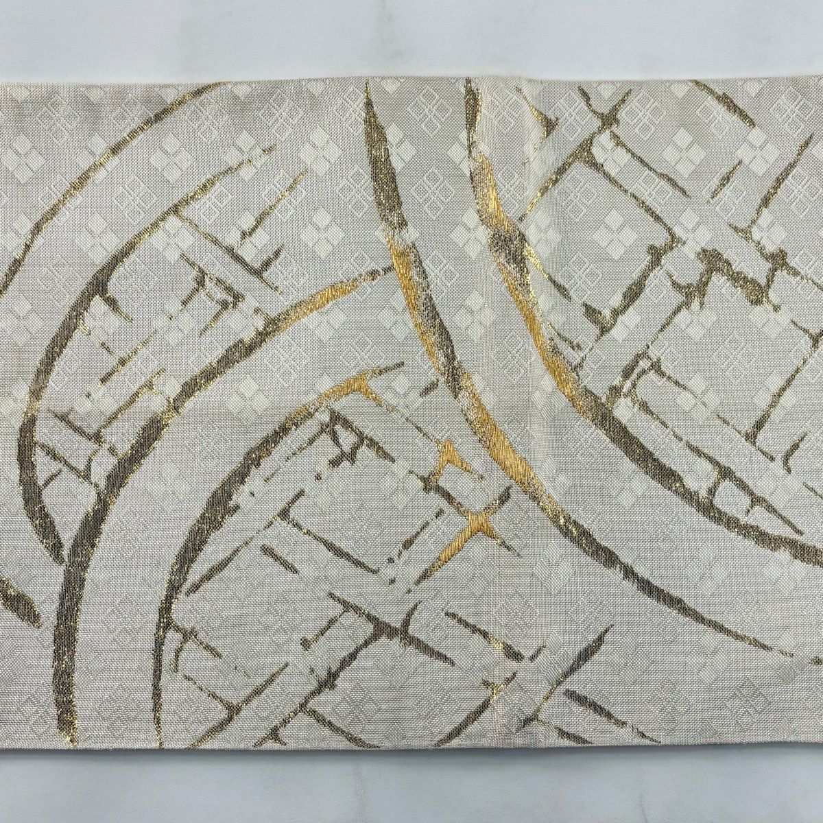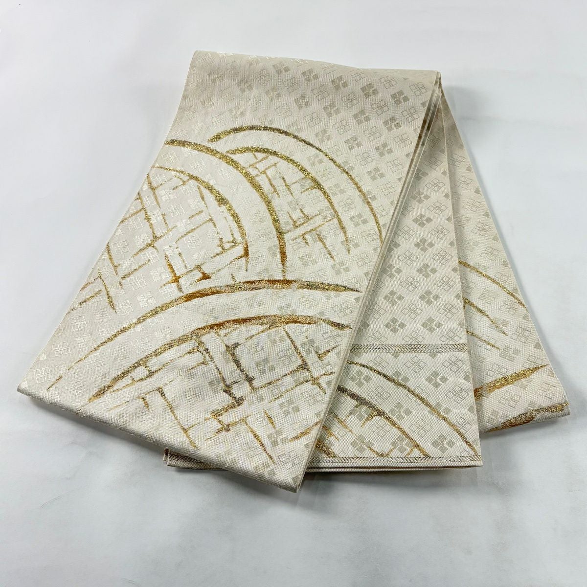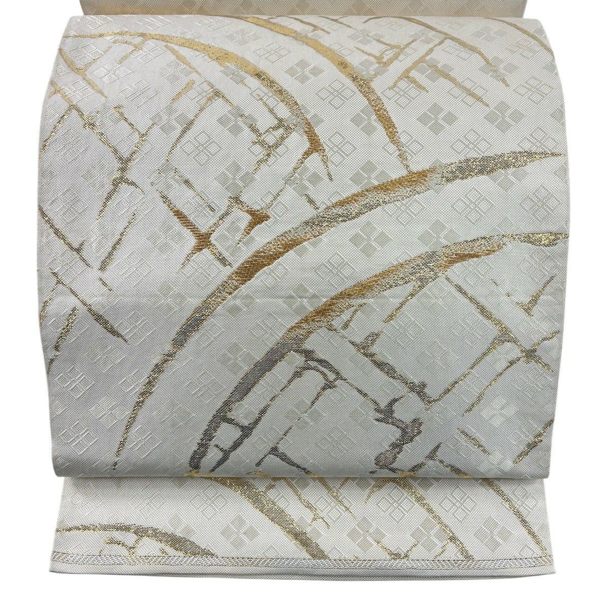 袋帯 秀品 竹垣文 菱 金糸 箔 クリーム お太鼓柄 正絹
