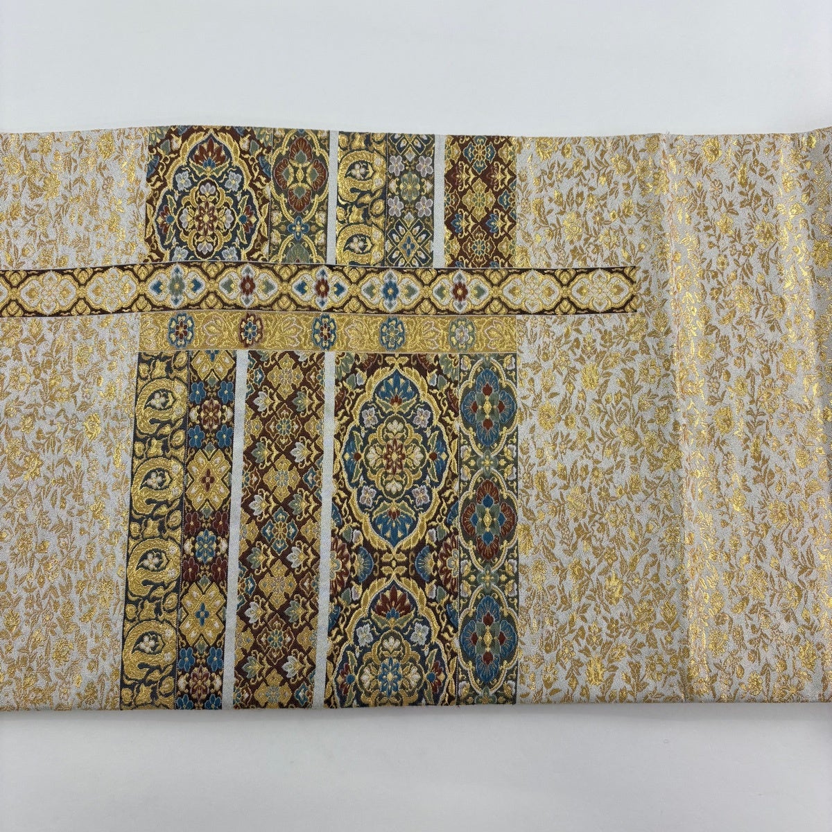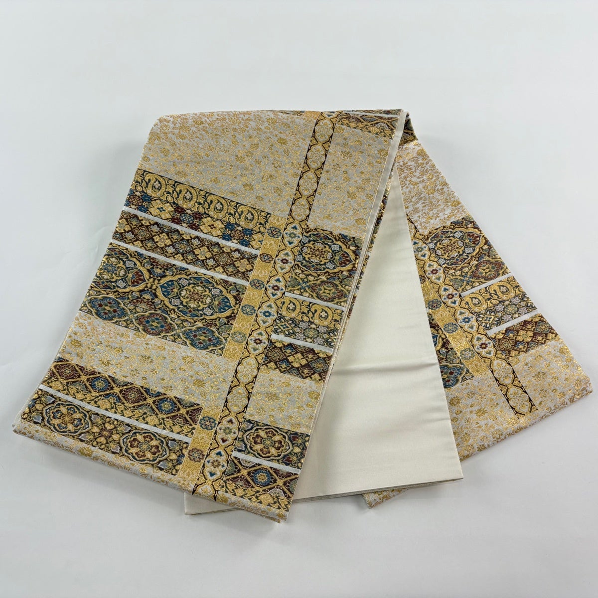 袋帯 秀品 有職文様 格天井 金銀糸 刺繍 クリーム 六通 正絹