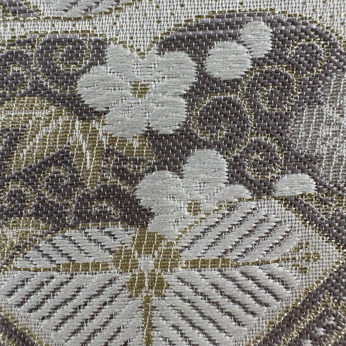 【美品】 袋帯 名品 華文 桜 金銀糸 クリーム お太鼓柄 正絹