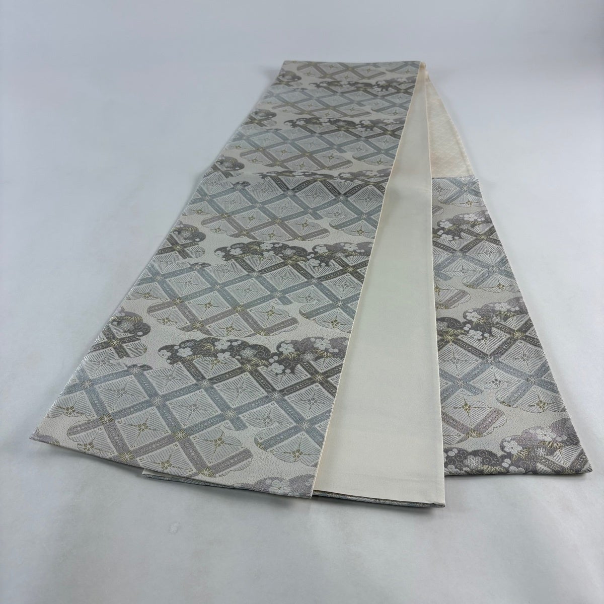【美品】 袋帯 秀品 波 霞 金銀糸 綴れ クリーム 六通 正絹