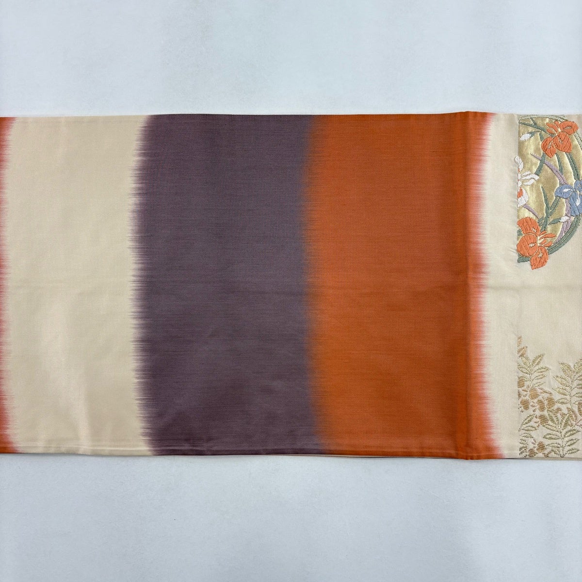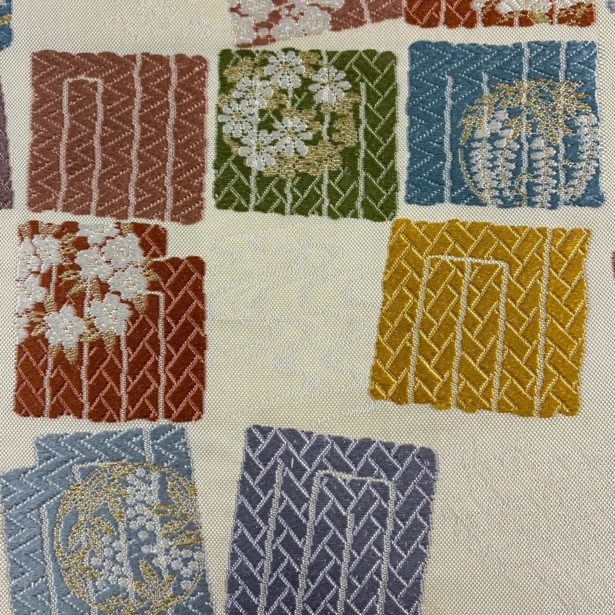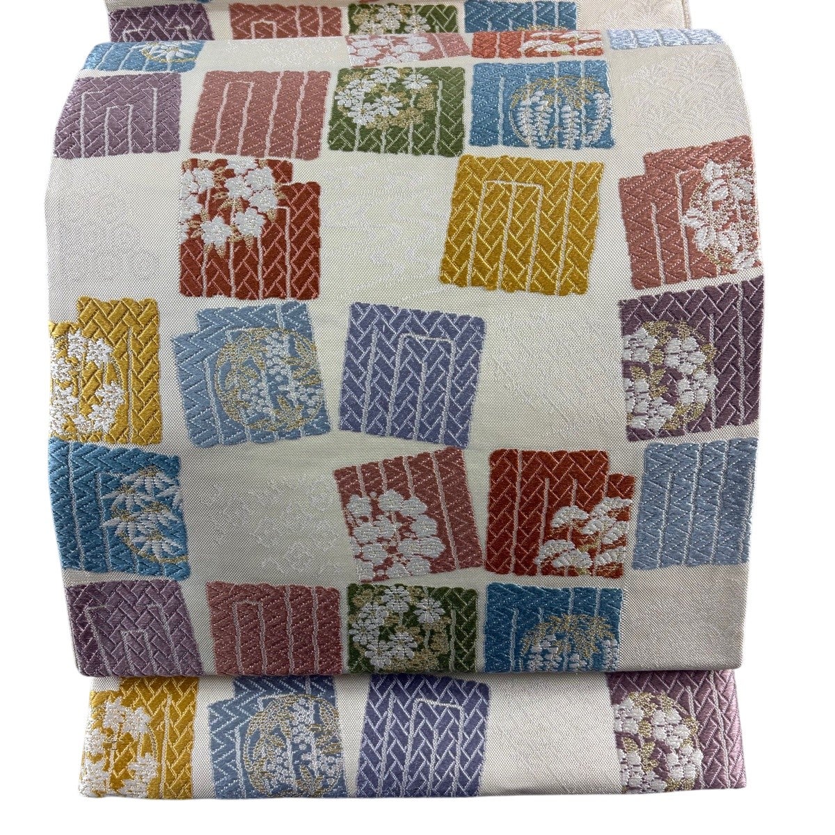 【美品】 袋帯 名品 源氏香 草花 唐織 金糸 クリーム 六通 正絹