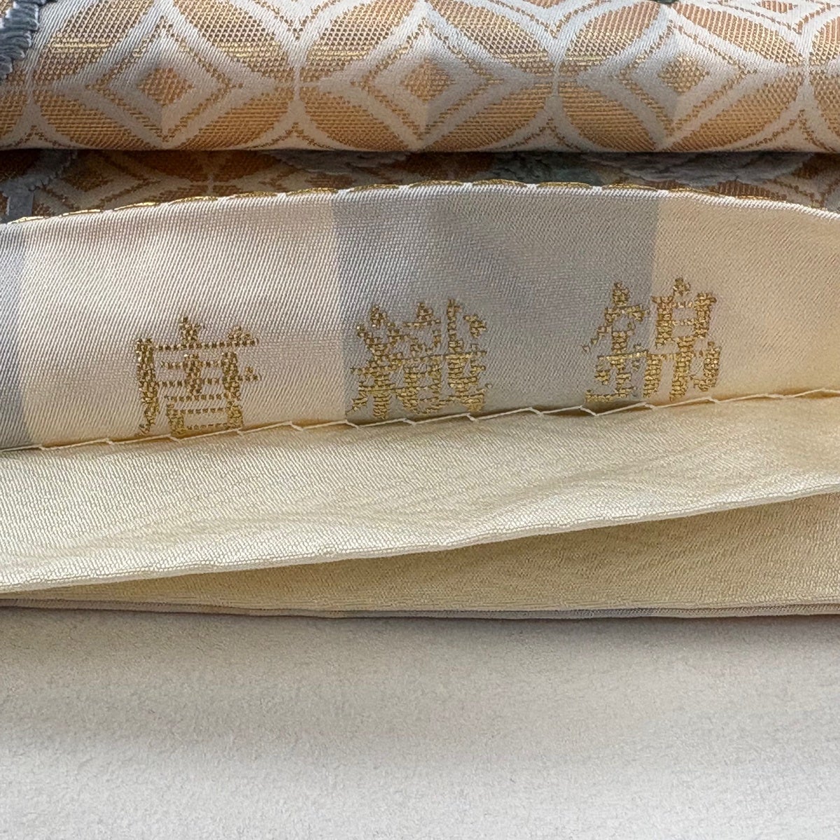 【美品】 袋帯 秀品 菱 華文 金銀糸 唐織 クリーム 六通 正絹