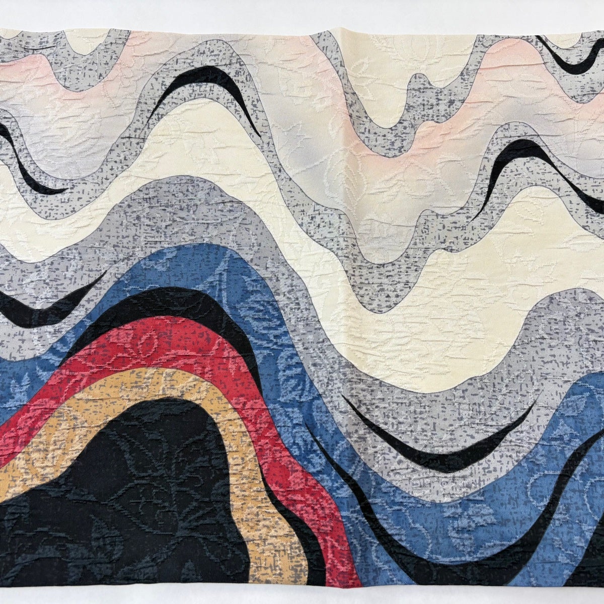 袋帯 秀品 夏帯 山 幾何学 銀糸 ラメ糸 クリーム お太鼓柄 正絹