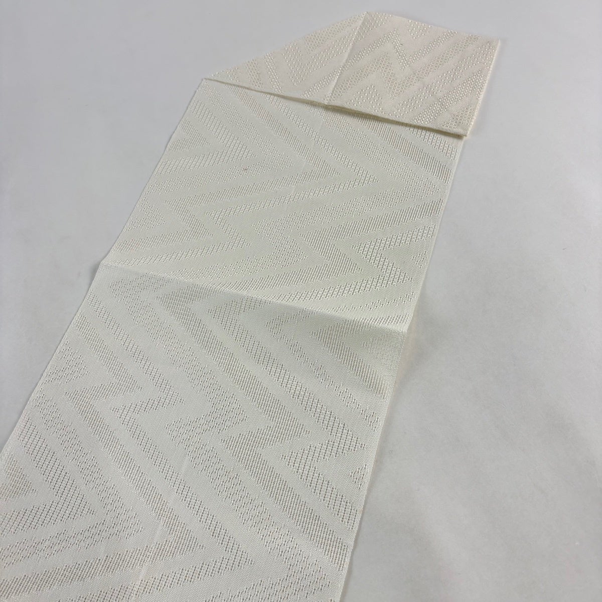 名古屋帯 秀品 夏帯 八寸名古屋帯 松葉仕立て 幾何学模様 クリーム 正絹