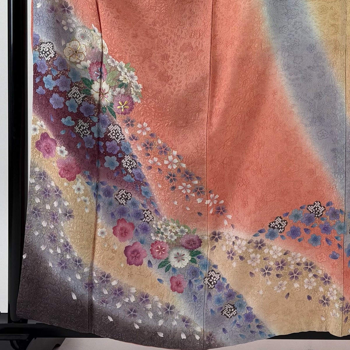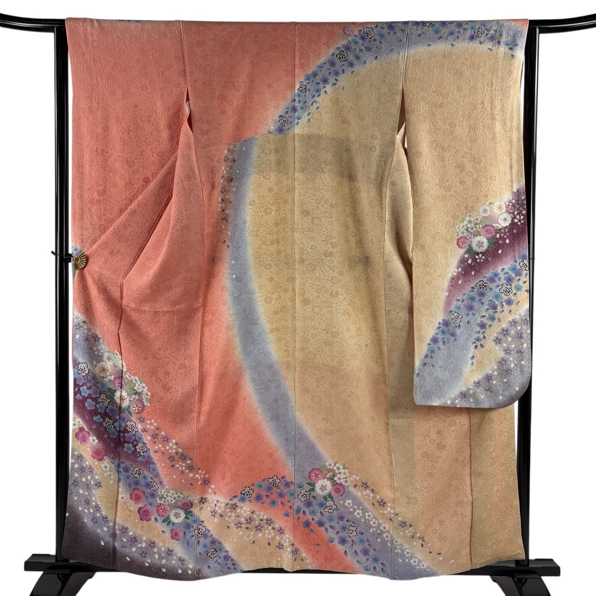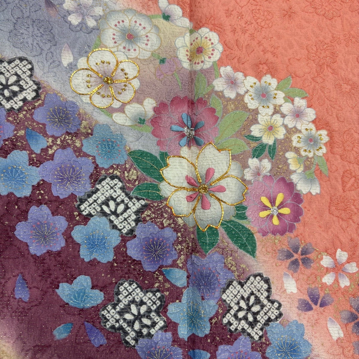 50%OFF 振袖 身丈167cm 裄丈65cm M 袷 花束 雪芝 金彩 ぼかし サーモンピンク 正絹 秀品 K50