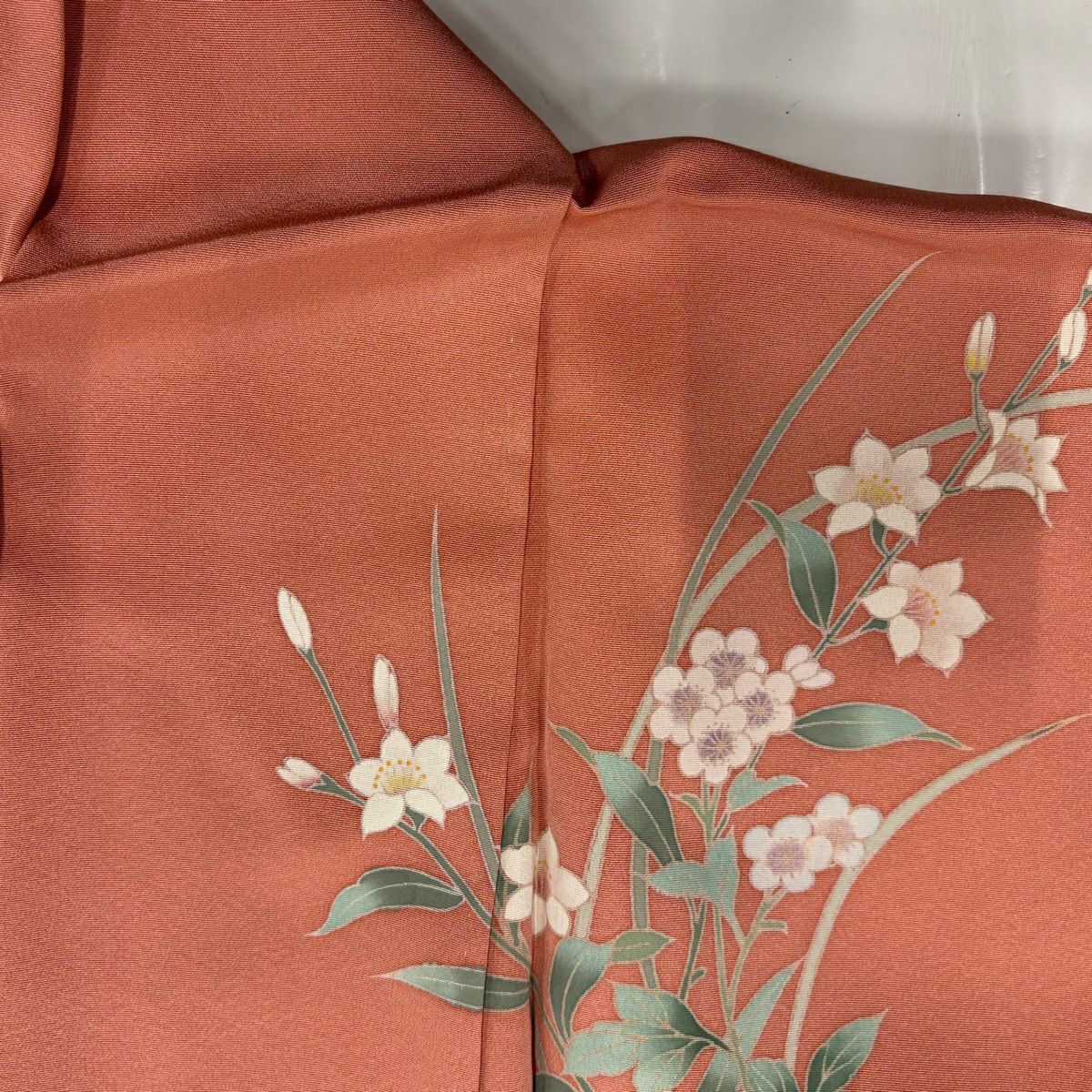 訪問着 身丈167.5cm 裄丈67cm M 袷 貝桶 草花 金糸 金彩 サーモンピンク 正絹 秀品