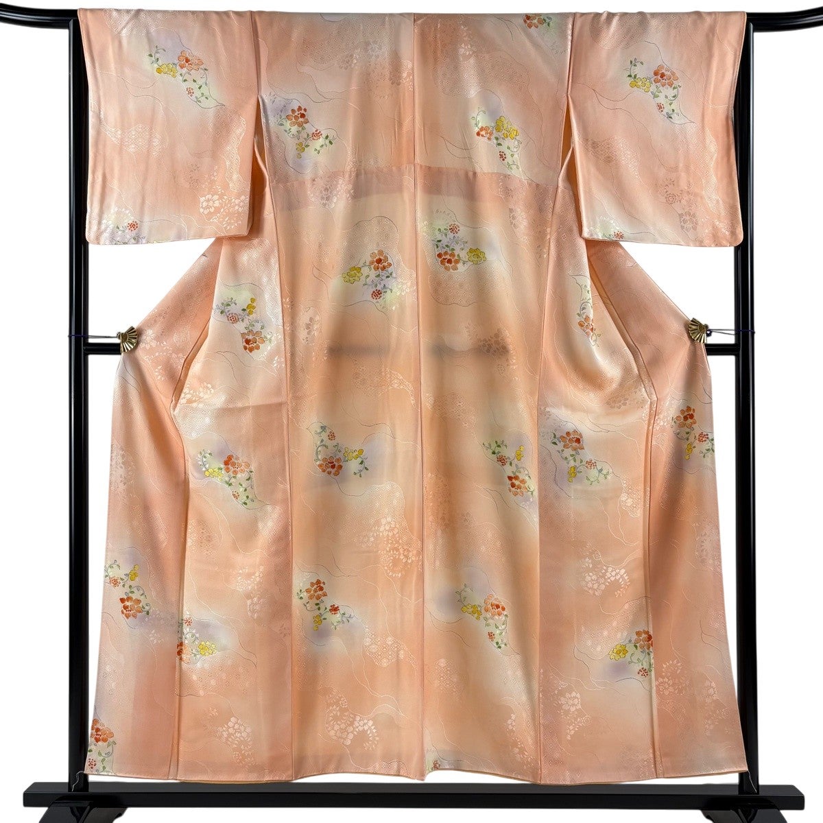 70%OFF 【美品】 訪問着 身丈164cm 裄丈66cm M 袷 草花 ぼかし サーモンピンク 正絹 秀品 K70