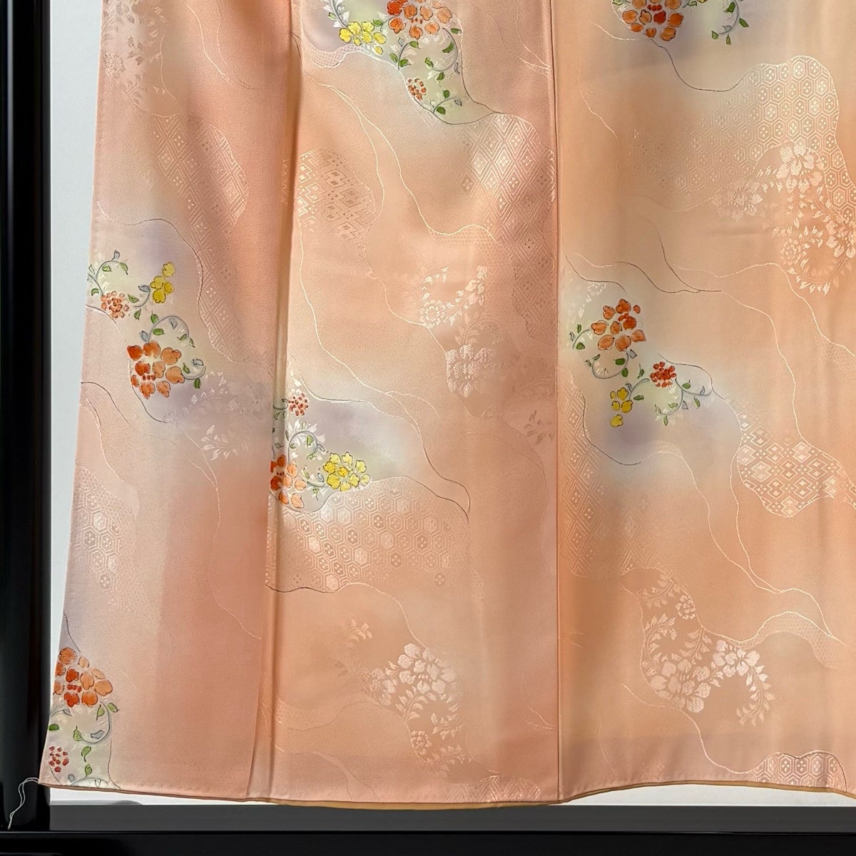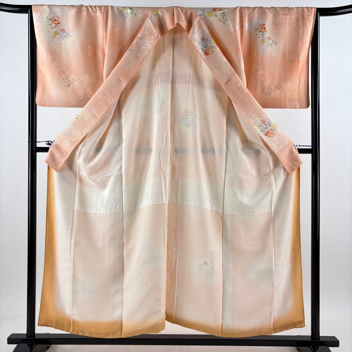70%OFF 訪問着 身丈161cm 裄丈63cm S 袷 草花 染め分け ぼかし サーモンピンク 正絹 秀品 K70