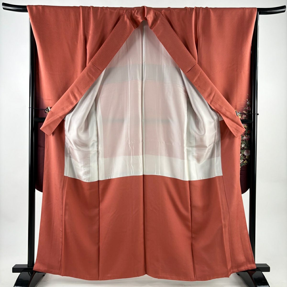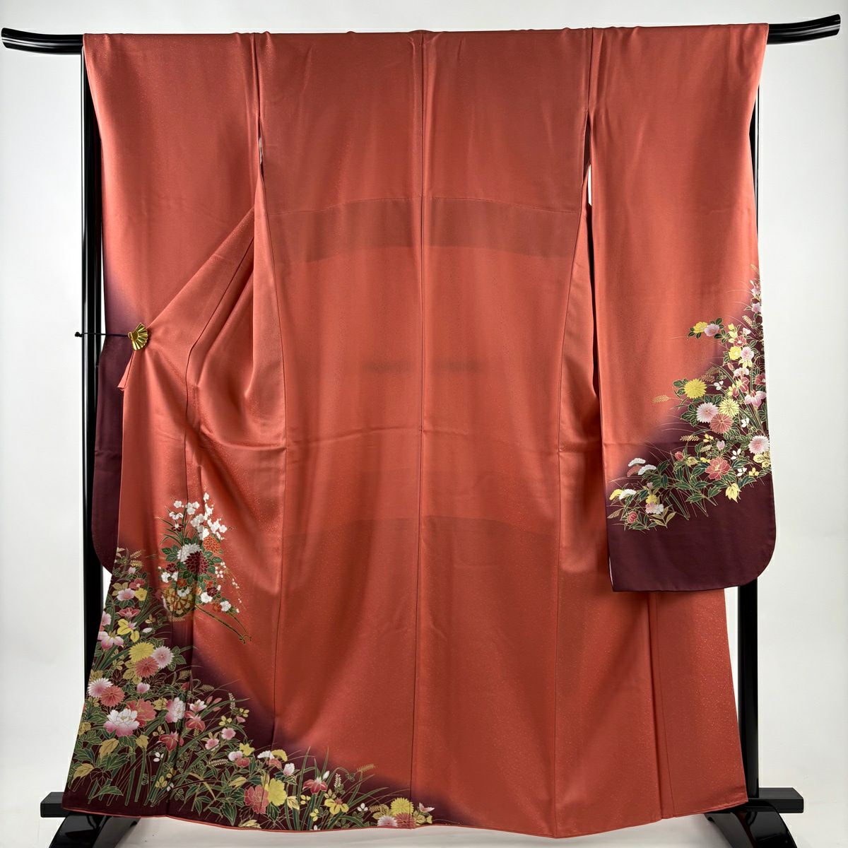振袖 身丈166cm 裄丈73cm L 袷 御所車 草花 刺繍 金通し サーモンピンク 正絹 逸品