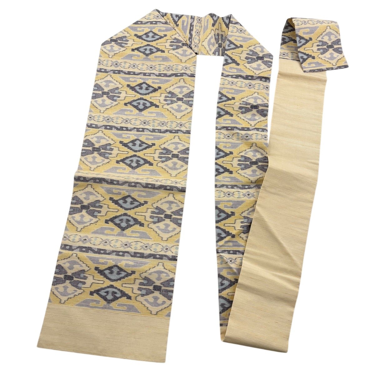 小紋 身丈173cm 裄丈70.5cm L 袷 名古屋帯セット 蛍ぼかし 地紋 薄黄 正絹 秀品
