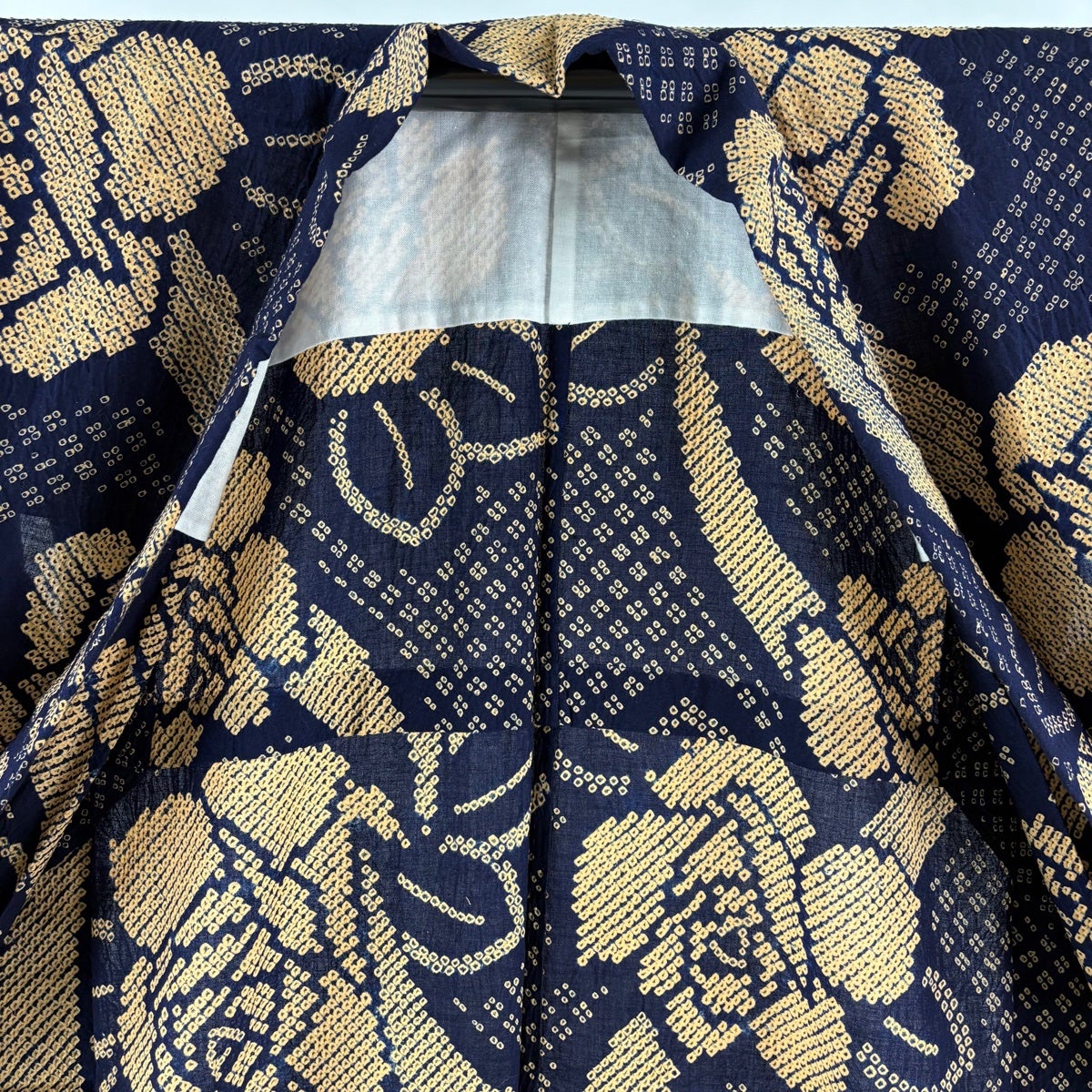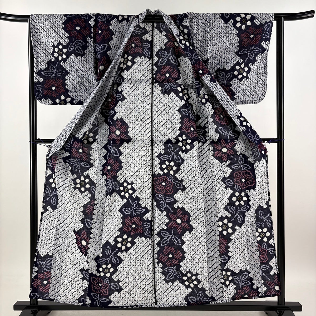 【美品】浴衣 身丈156.5cm 裄丈66.5cm M 浴衣セット 絞り浴衣 花 紺色 綿 名品