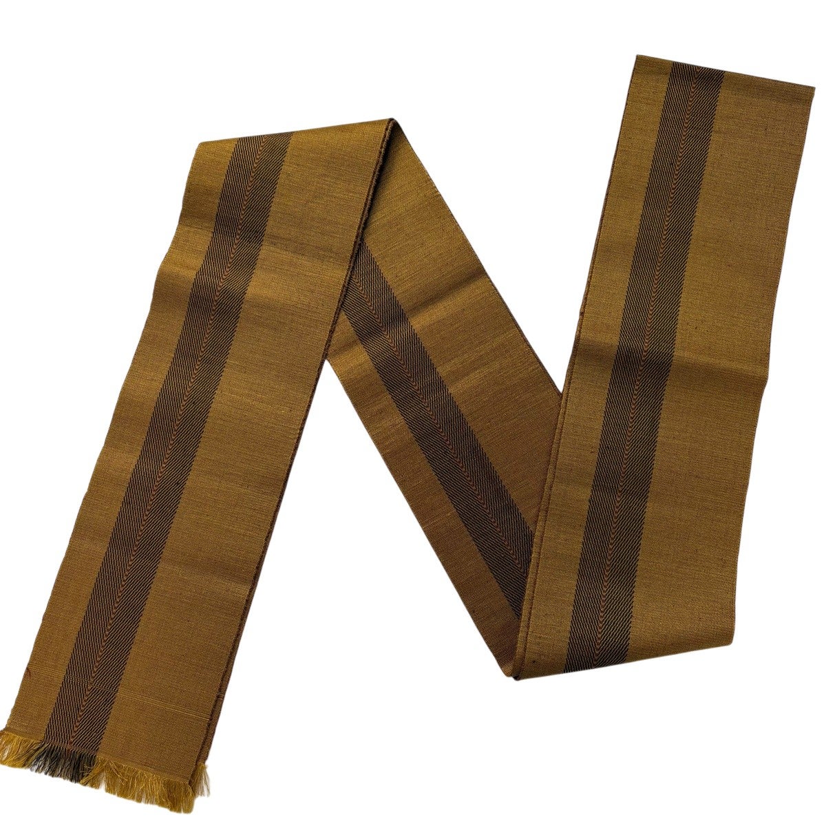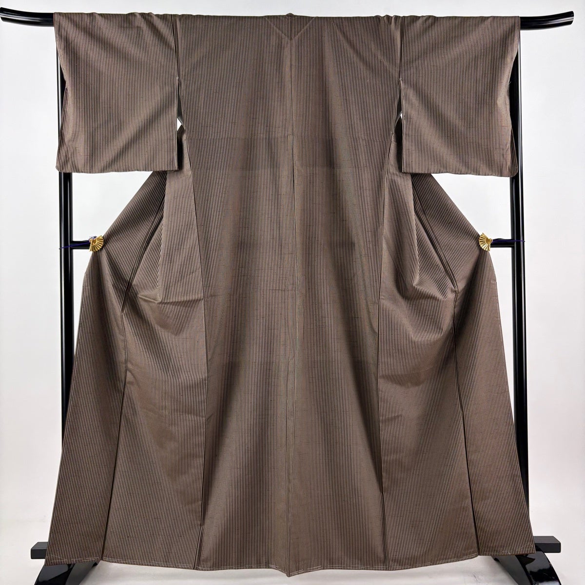 【美品】 紬 身丈164cm 裄丈68.5cm L 袷 袋帯セット 縞 ベージュ 正絹 名品