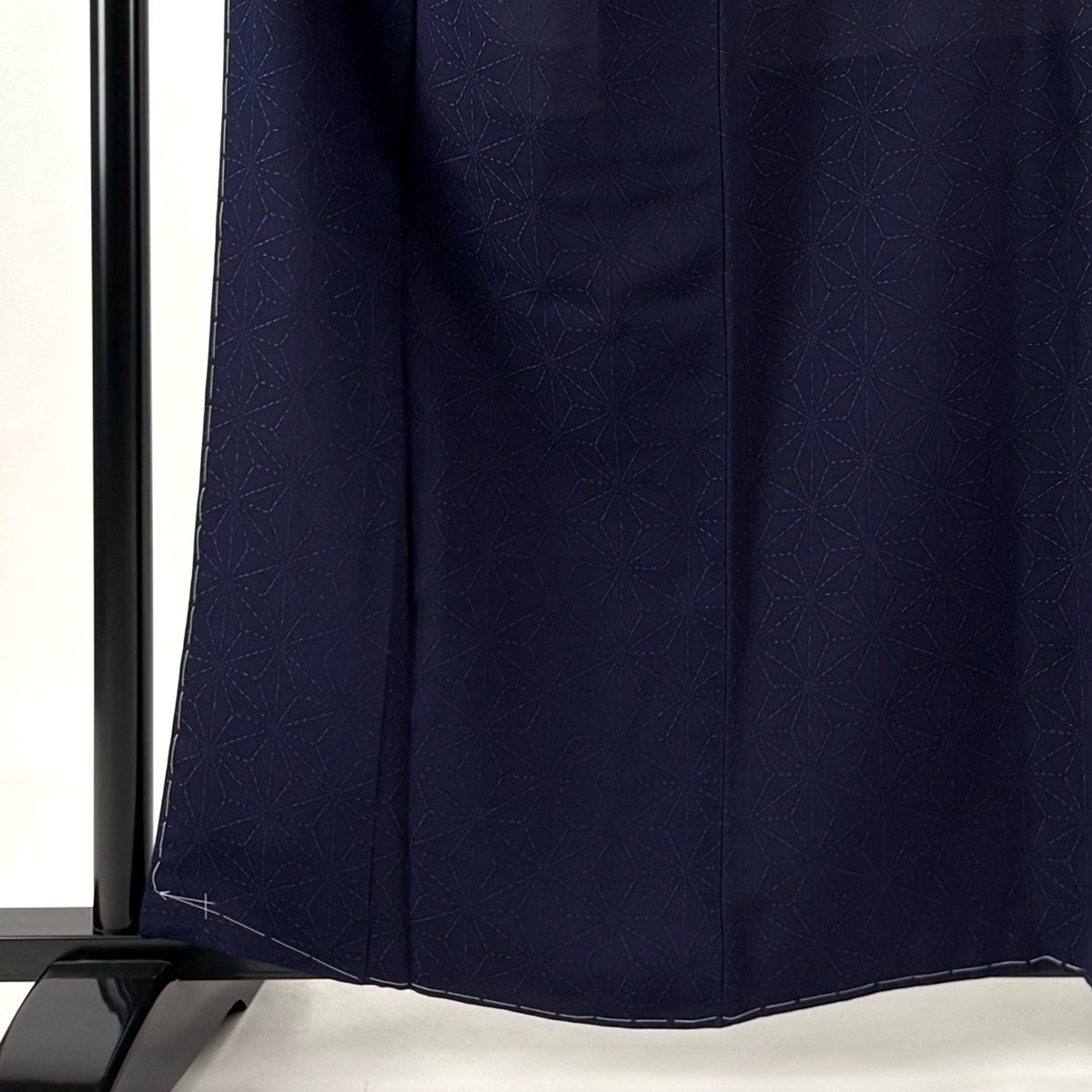 【美品】 小紋 身丈160cm 裄丈66cm M 袷 名古屋帯セット 麻の葉 藍色 正絹 秀品