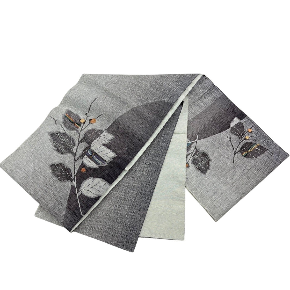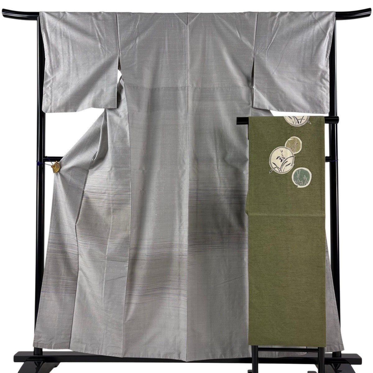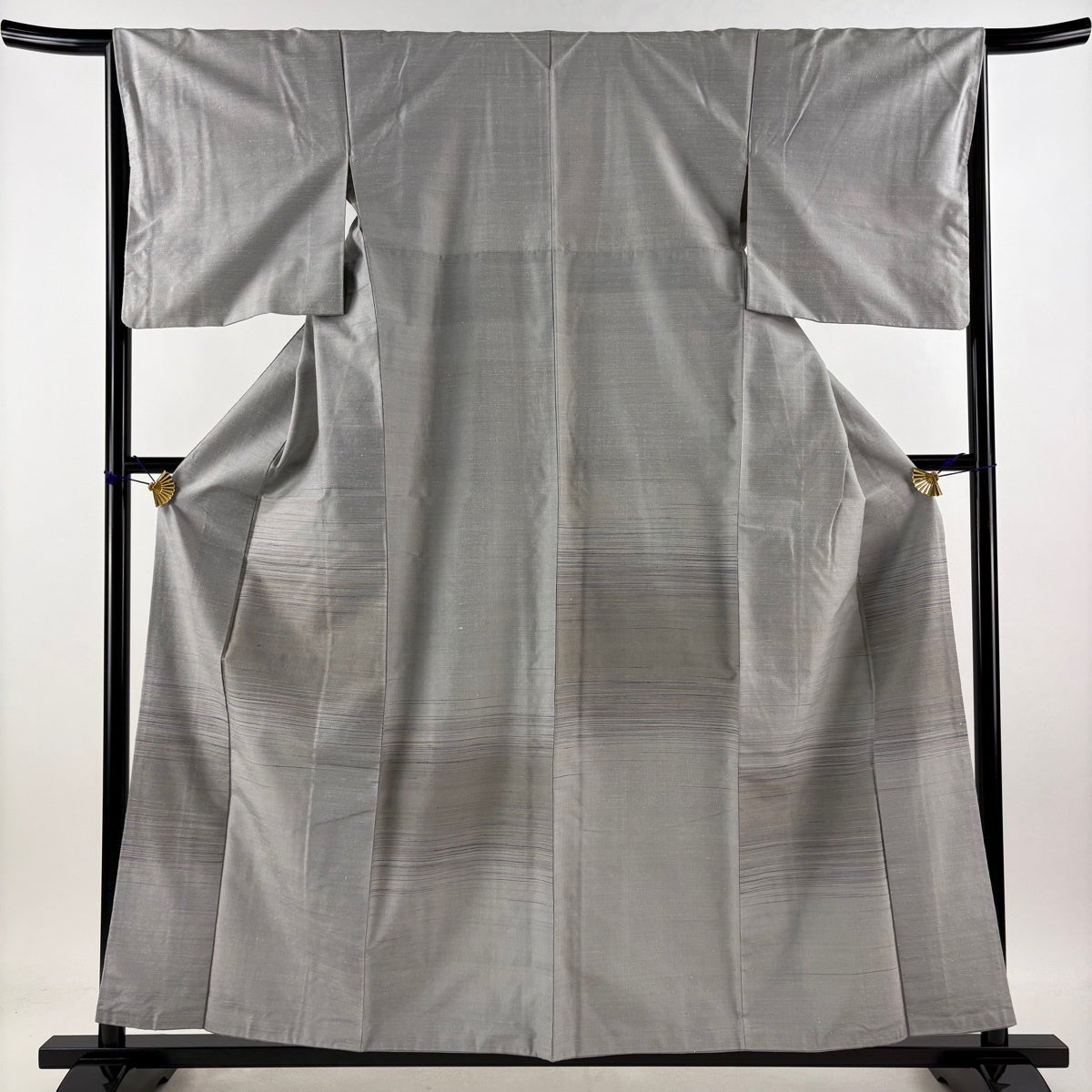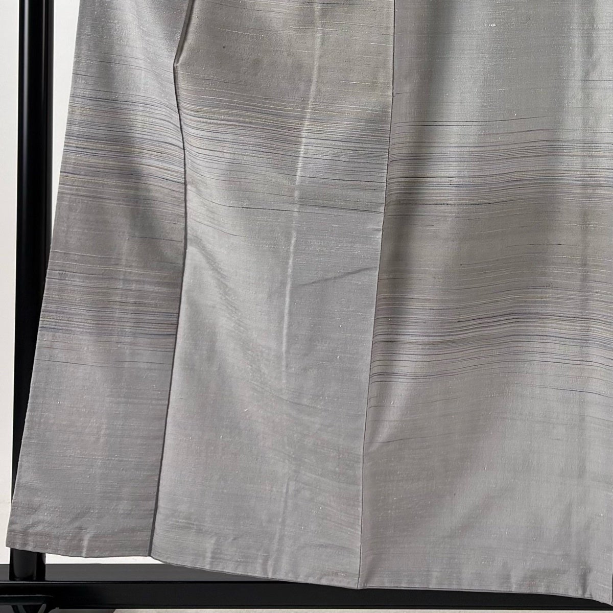 付下げ 身丈158.5cm 裄丈66cm M 袷 名古屋帯セット 紬地 段縞 灰色 正絹 秀品