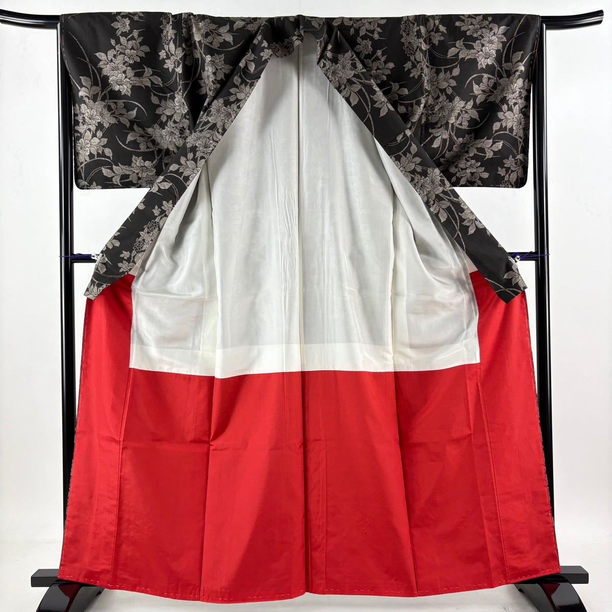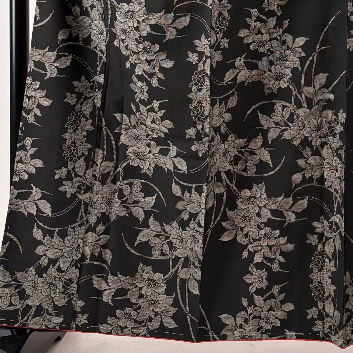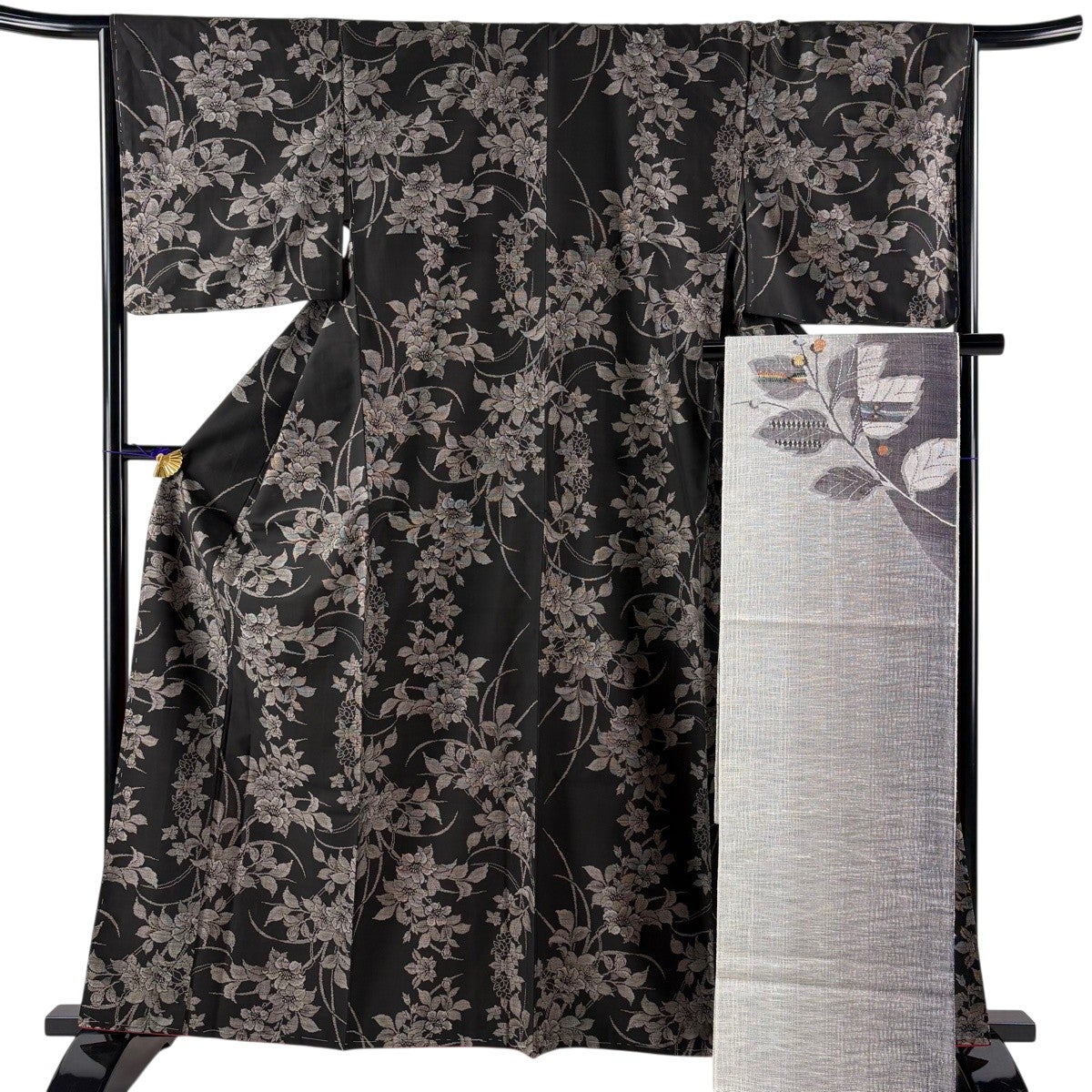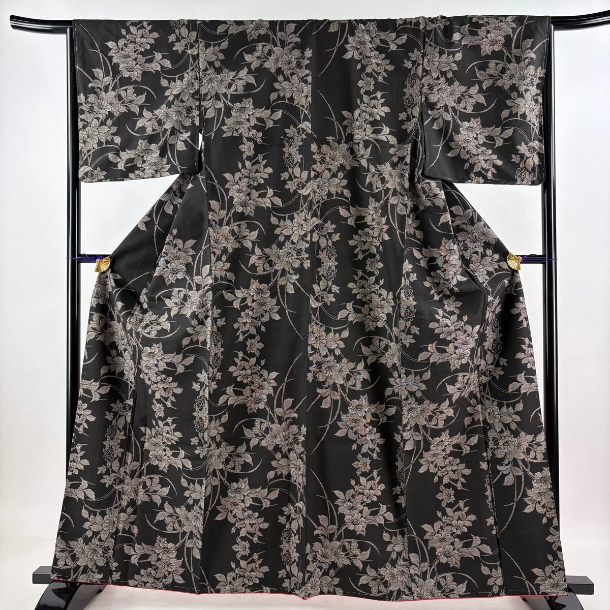 訪問着 身丈159cm 裄丈66cm M 袷 袋帯セット 草花 青海波 総絞り 黒 正絹 秀品