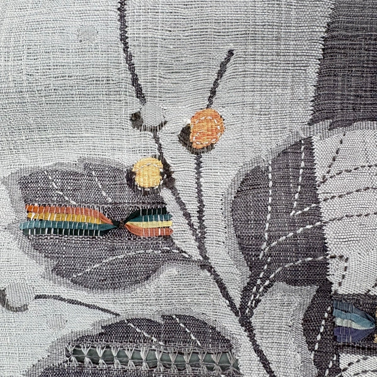 【美品】 振袖 身丈159cm 裄丈63cm S 袷 袋帯フルセット 草花 鶴 灰色 正絹 名品