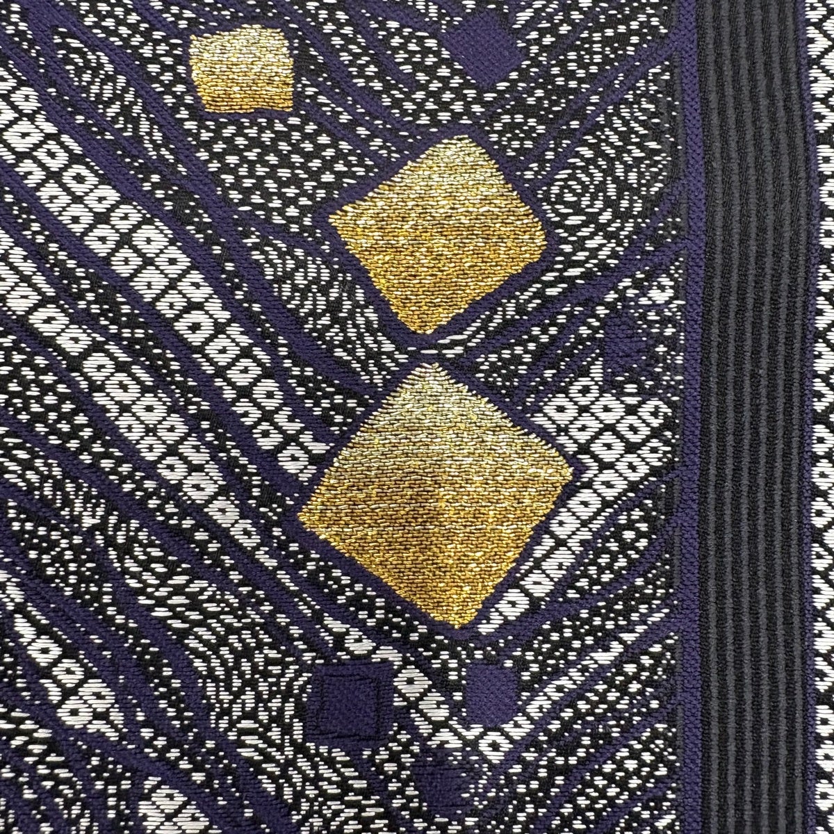 小紋 身丈166cm 裄丈68cm L 袷 袋帯セット 幾何学 青灰色 正絹 秀品 一つ紋