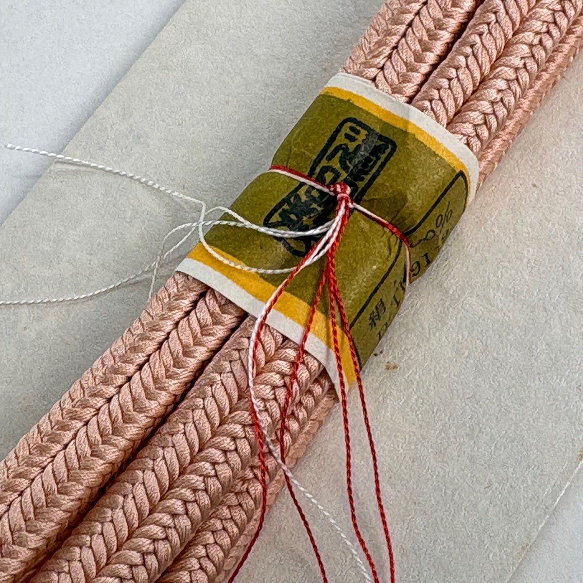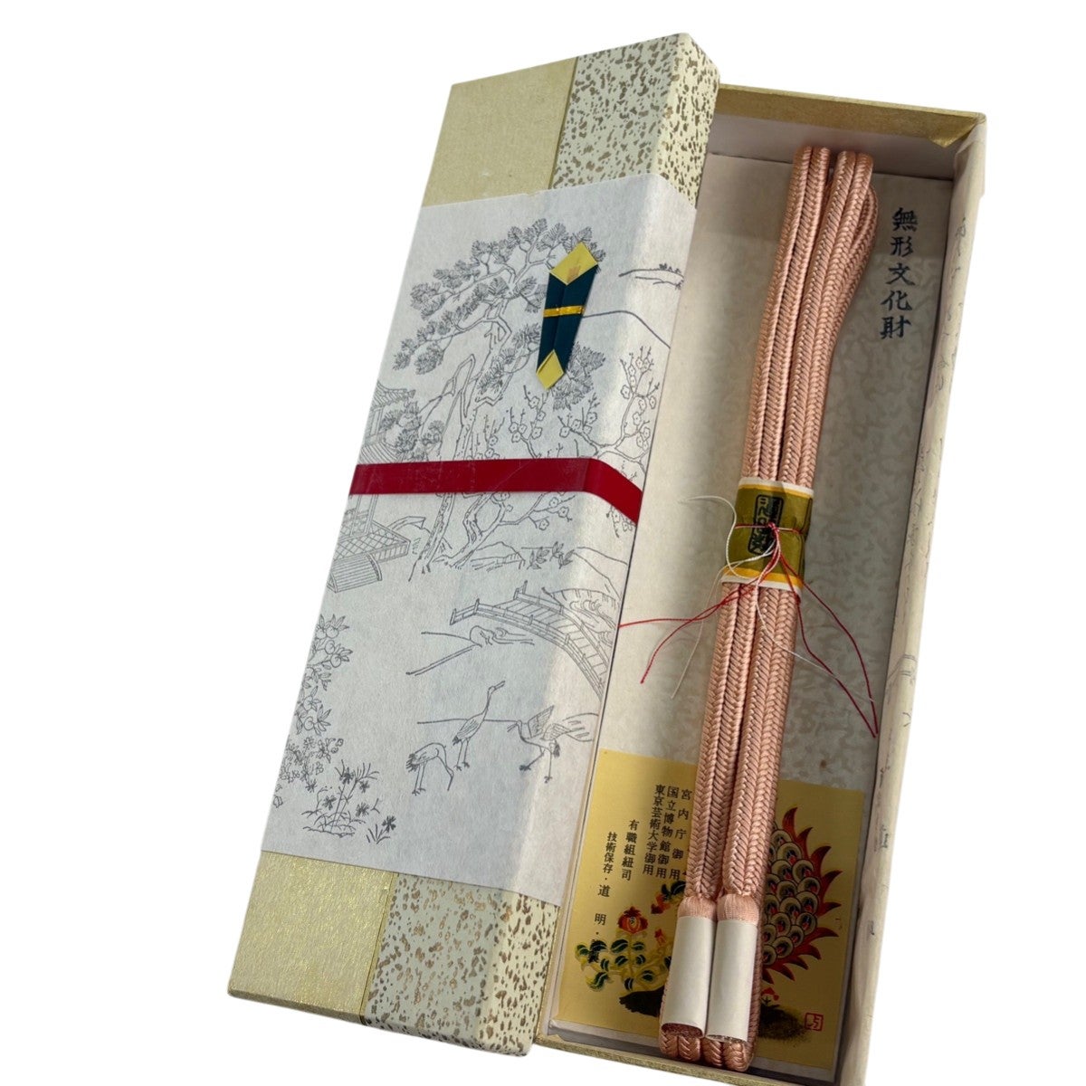 【美品】帯締め 名品 無形文化財 有職組紐 道明 カジュアル ピンクベージュ 正絹 和装小物