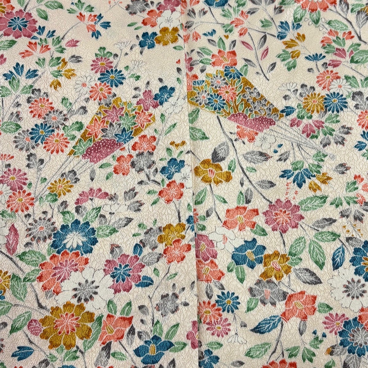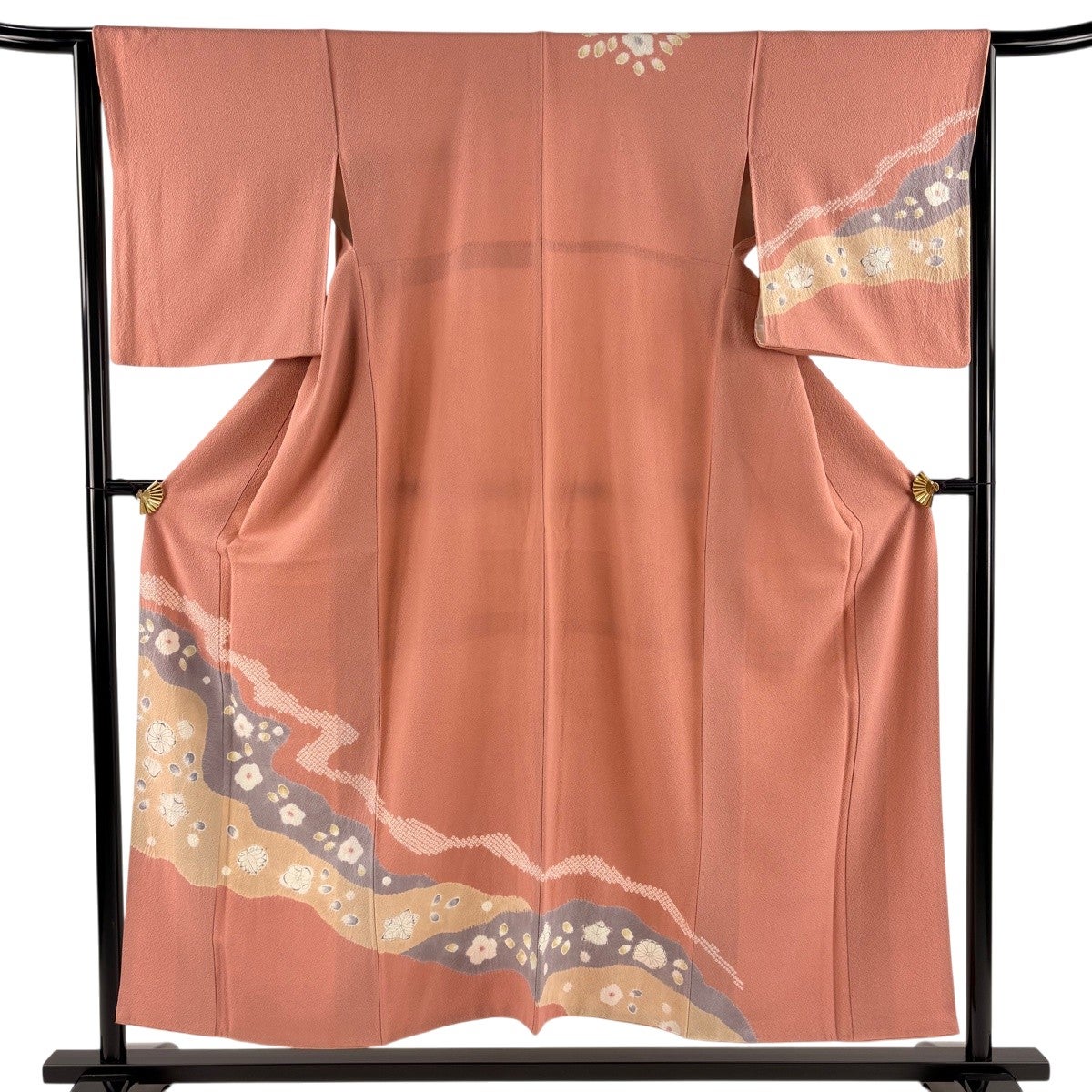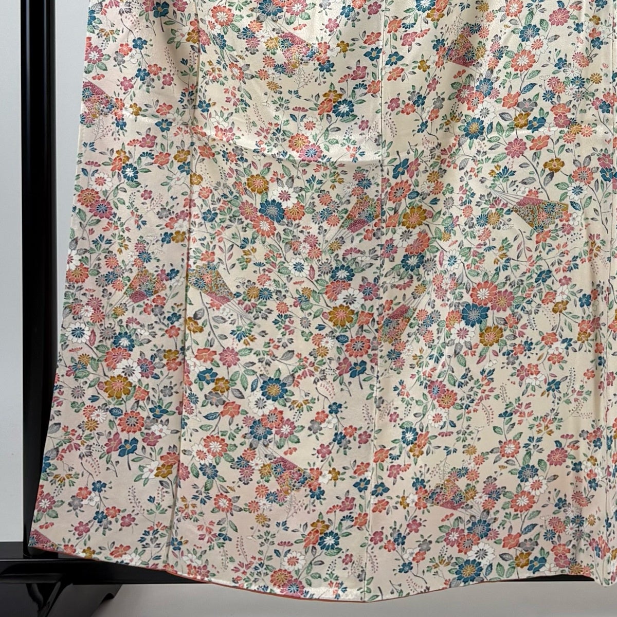 訪問着 身丈162.5cm 裄丈62cm S 袷 扇 草花 金糸 金彩 ピンクベージュ 正絹 秀品