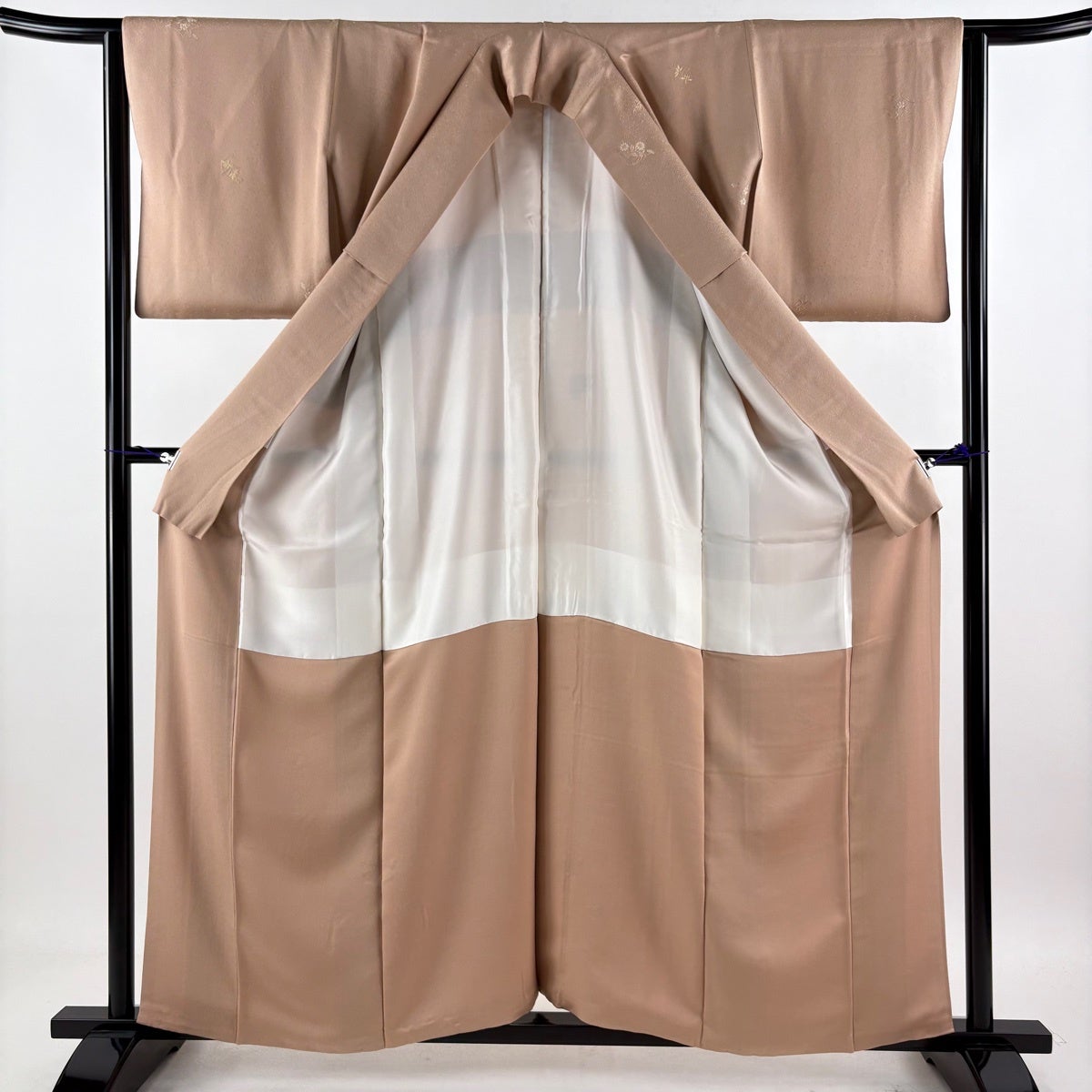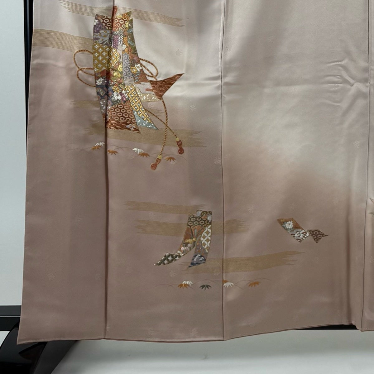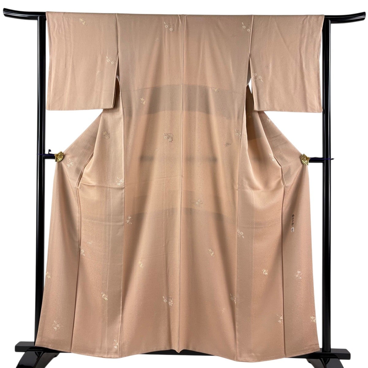 付下げ 身丈162cm 裄丈63cm S 袷 短冊 草花 金糸 刺繍 ピンクベージュ 正絹 秀品