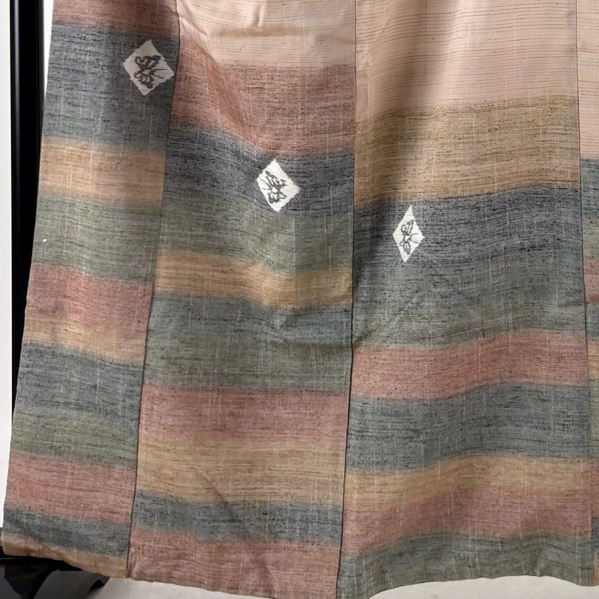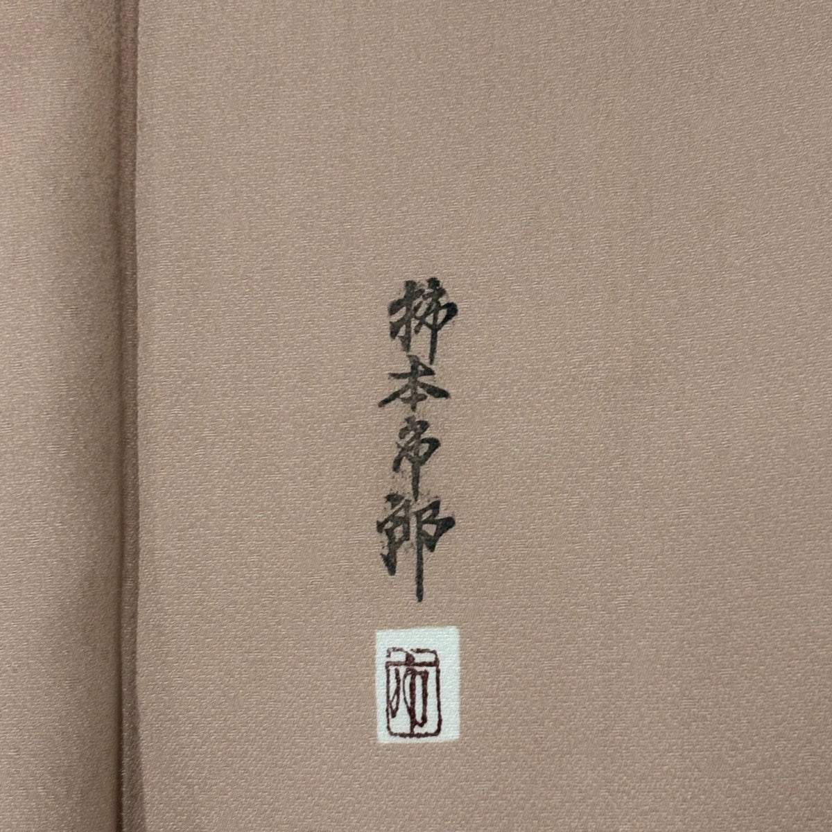 小紋 身丈160.5cm 裄丈63cm S 袷 柿本市郎 落款あり ピンクベージュ 正絹 名品