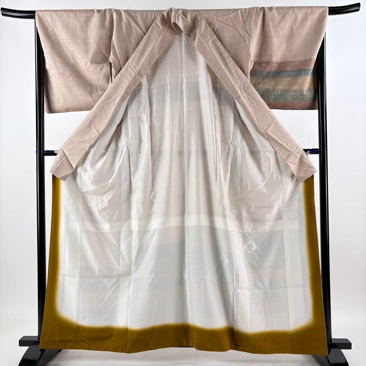50%OFF 紬 身丈158cm 裄丈65.5cm M 袷 ピンクベージュ 正絹 名品 K50