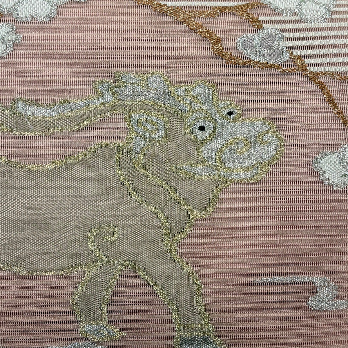 30%OFF 袋帯 秀品 夏帯 絽 花籠 縞 金糸 刺繍 ピンクベージュ 六通 正絹 K30
