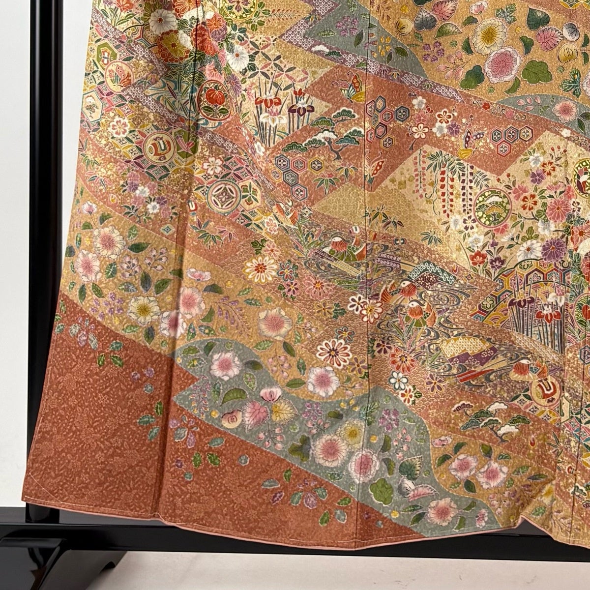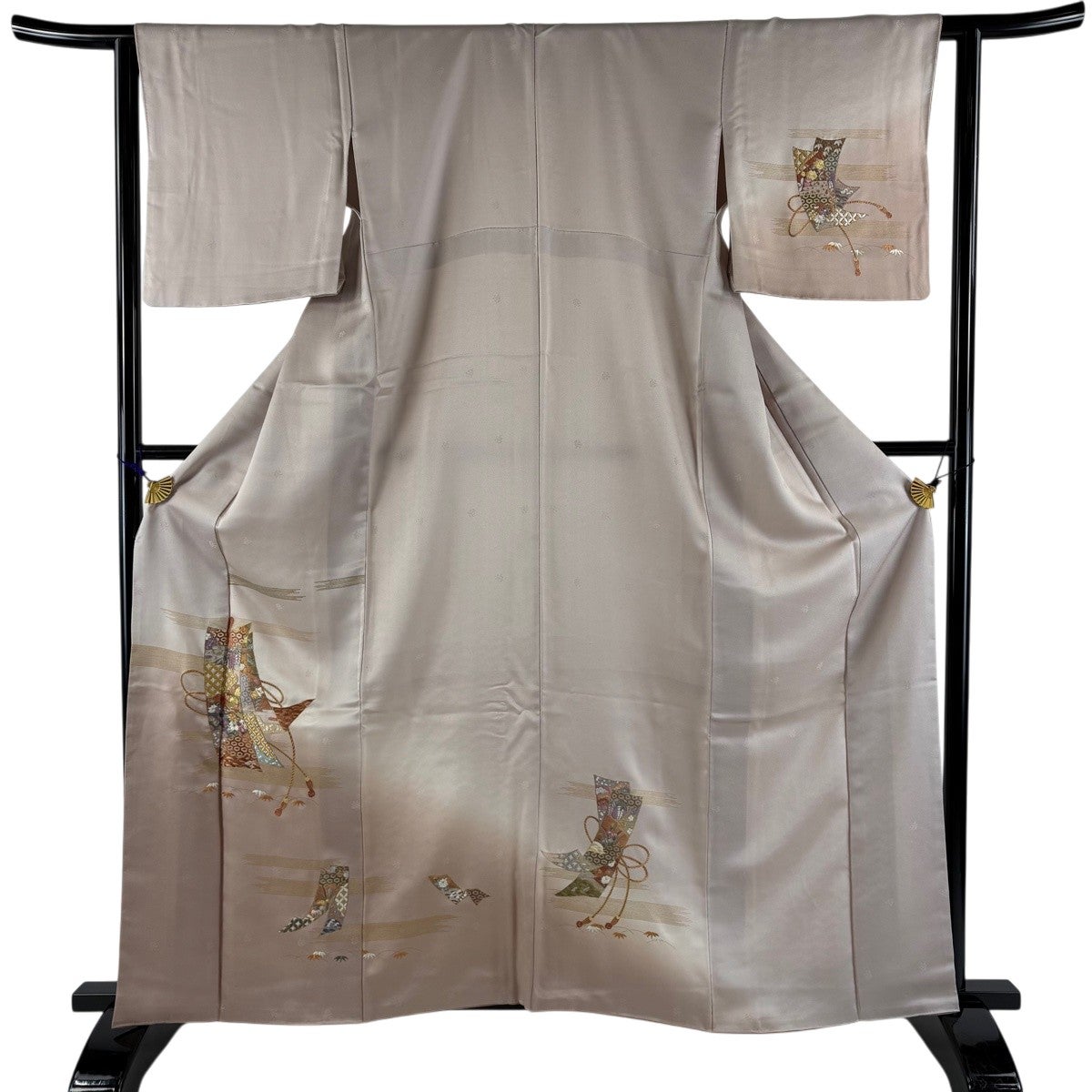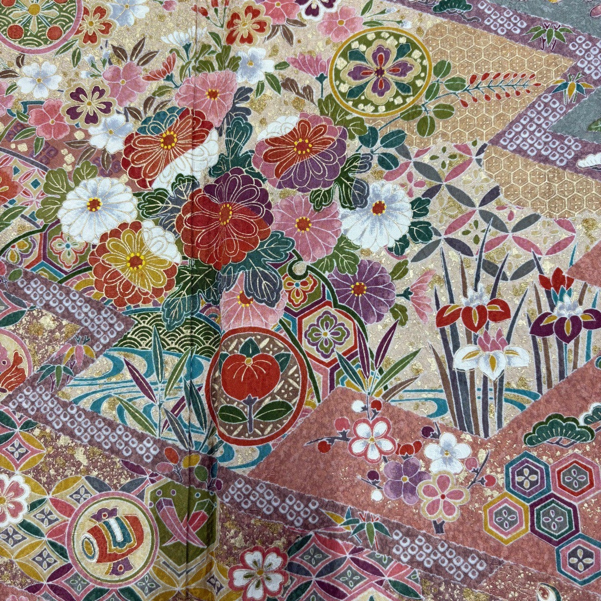 訪問着 身丈157cm 裄丈62cm S 袷 花鳥 宝尽くし 金彩 ピンクベージュ 正絹 秀品