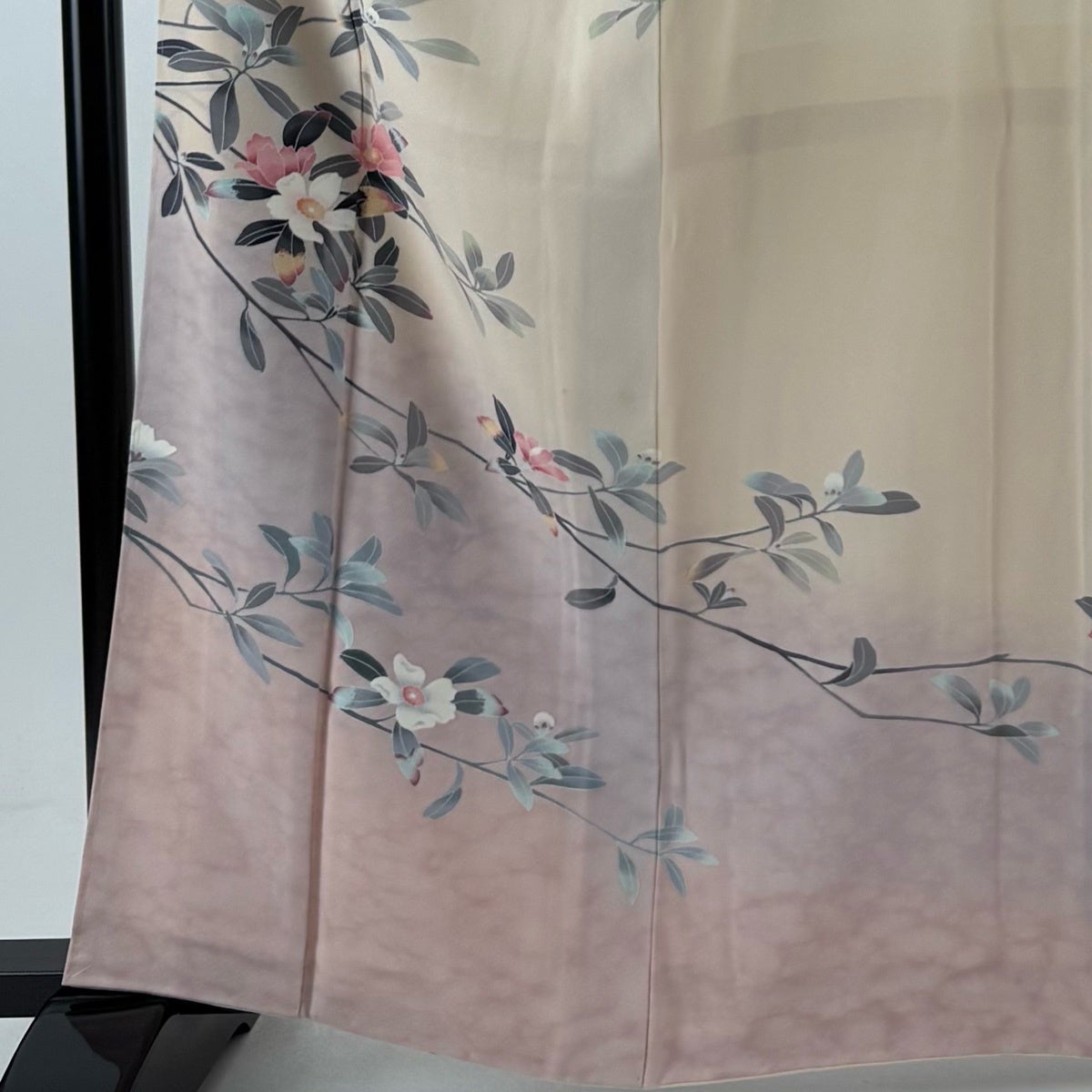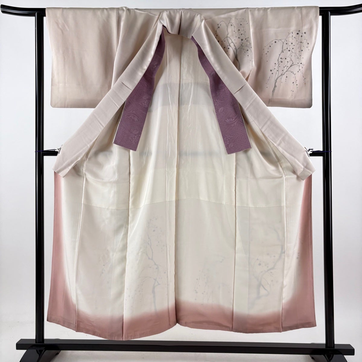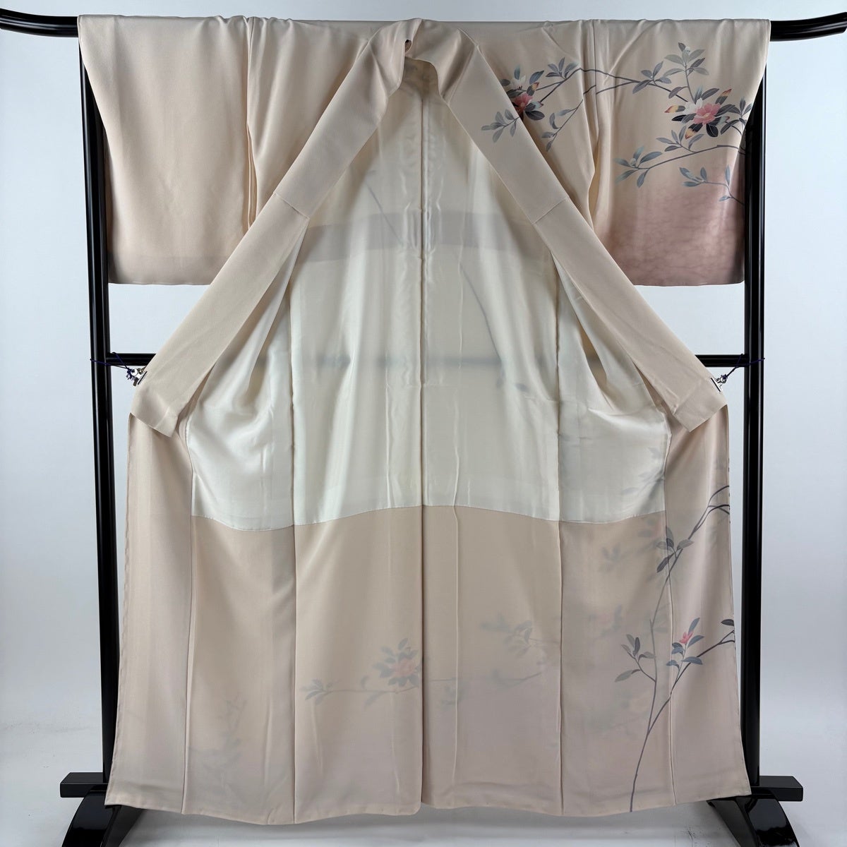 訪問着 身丈162cm 裄丈68cm L 袷 落款あり 枝花 ぼかし ピンクベージュ 正絹 秀品