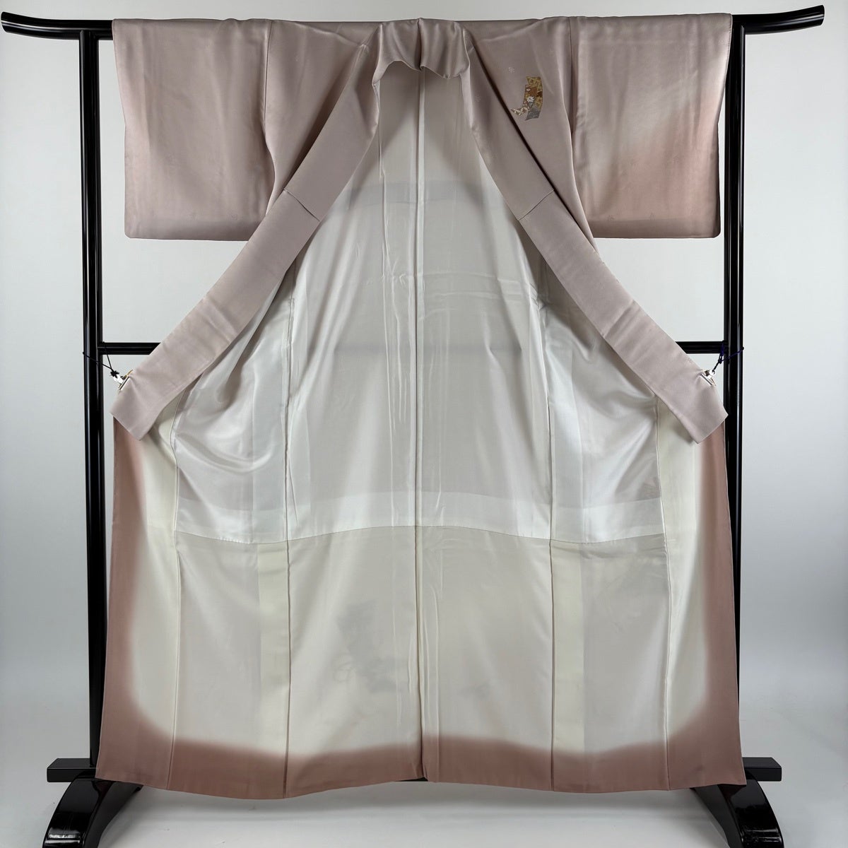 【美品】 長襦袢 身丈124.5cm 裄丈62.5cm S 草花 ぼかし ピンクベージュ 正絹 秀品