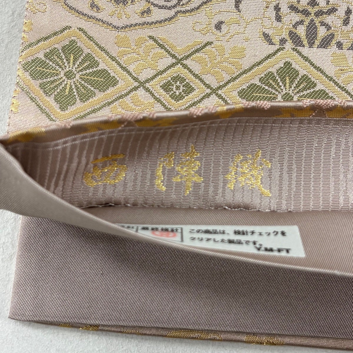 30%OFF 【美品】 袋帯 秀品 熨斗 草花 箔 金糸 ピンクベージュ 六通 正絹 K30