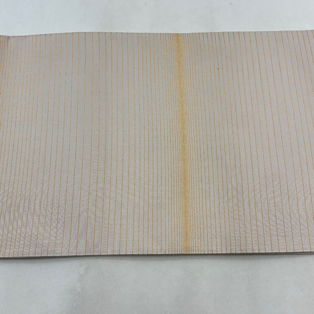 袋帯 秀品 段縞 幾何学模様 箔 銀糸 ピンクベージュ 六通 正絹