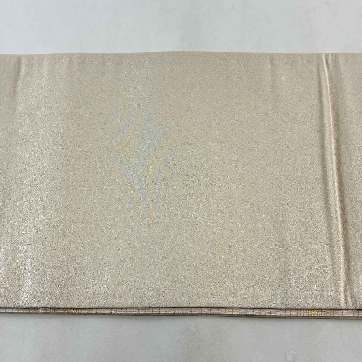 【美品】 名古屋帯 逸品 花菱 斜め格子 箔 ピンクベージュ 正絹