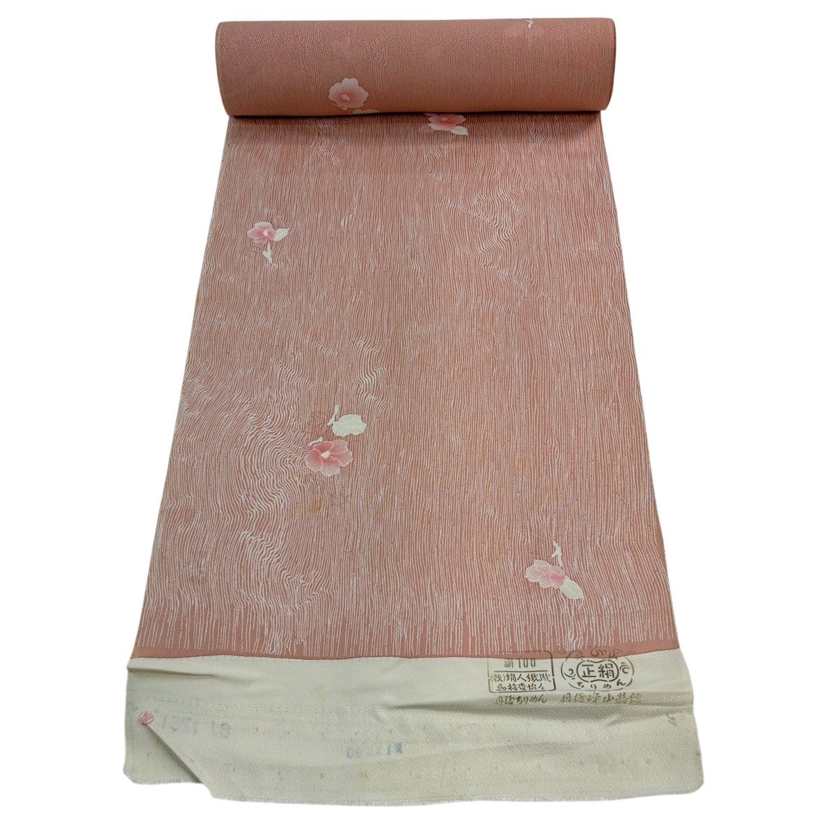 反物 秀品 小紋 草花 幾何学模様 サーモンピンク 正絹