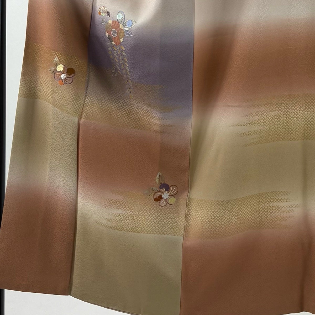 付下げ 身丈152cm 裄丈59.5cm S 袷 地紋起こし バチ衿 青海波 地紋 ぼかし ピンクベージュ 正絹 秀品