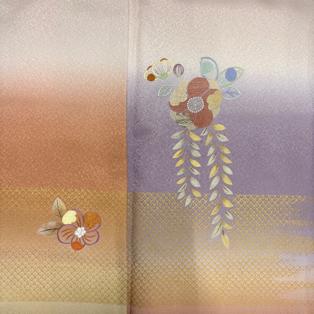 小紋 身丈160cm 裄丈64cm M 袷 菊 地紋 ぼかし サーモンピンク 正絹 優品