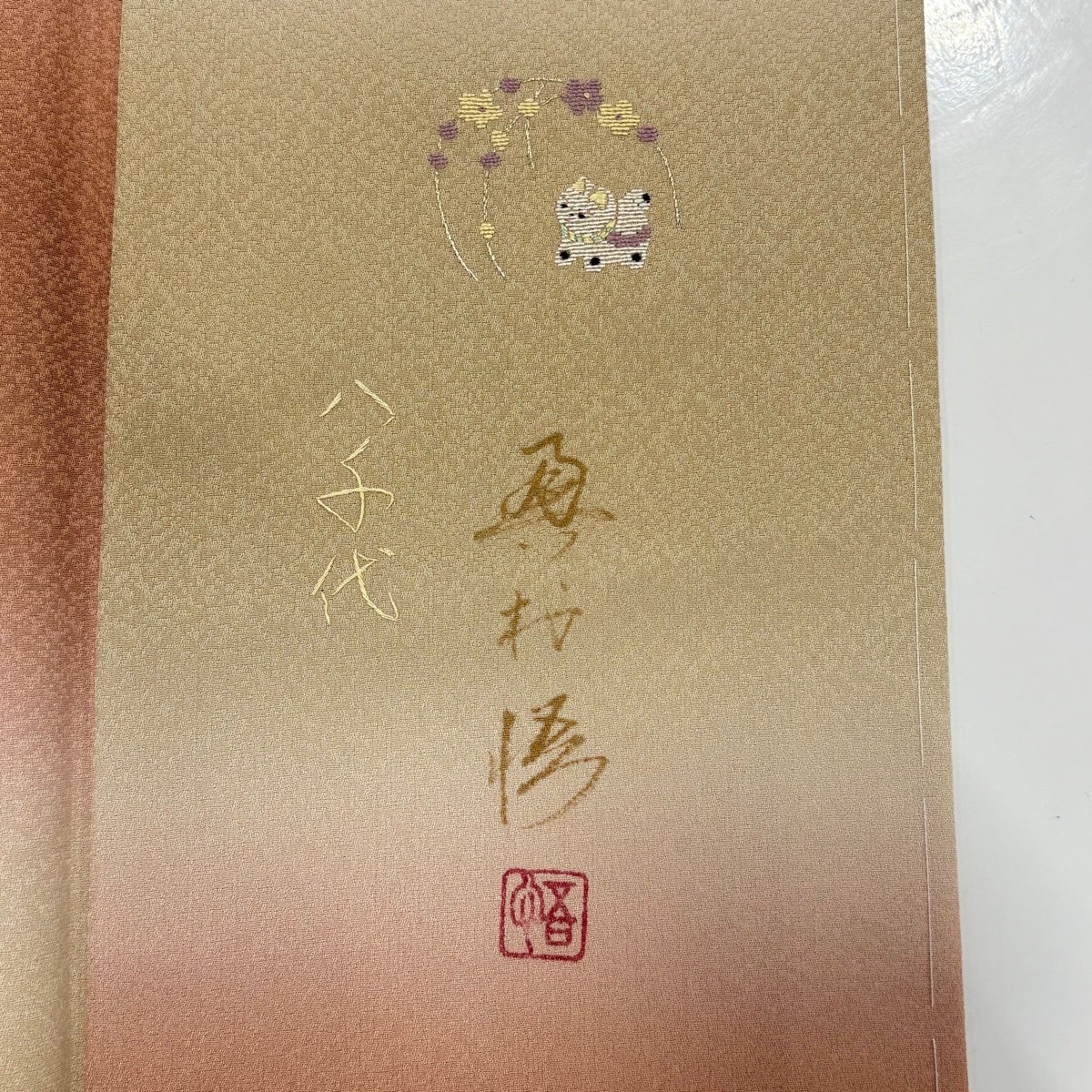 【在庫一掃】 道中着 身丈125.5cm 裄丈63.5cm S 和装コート 枝花 刺繍 金彩 ピンクベージュ 正絹 逸品