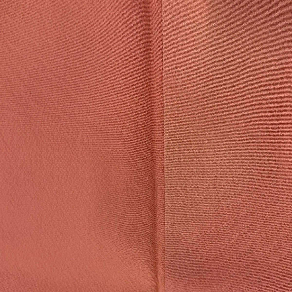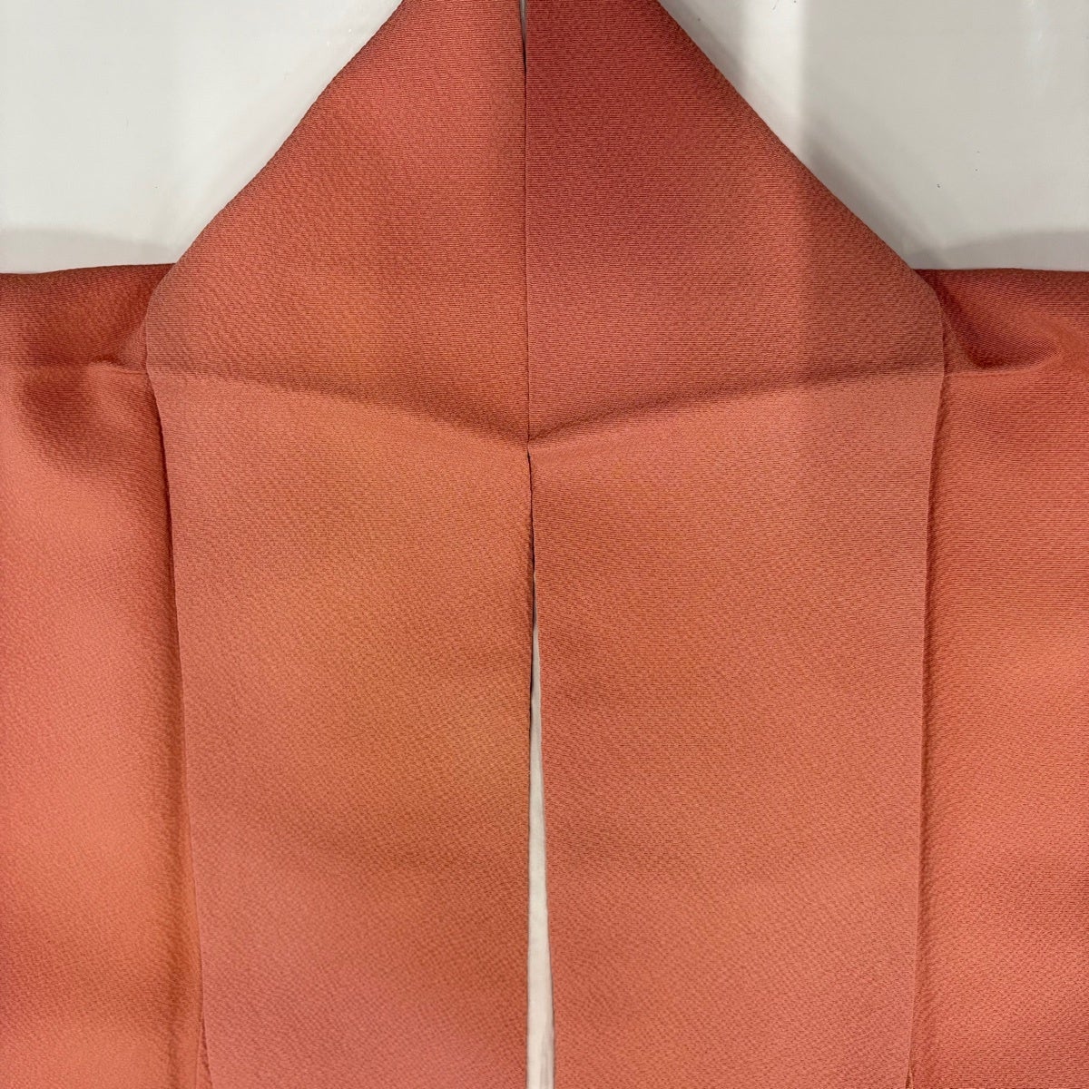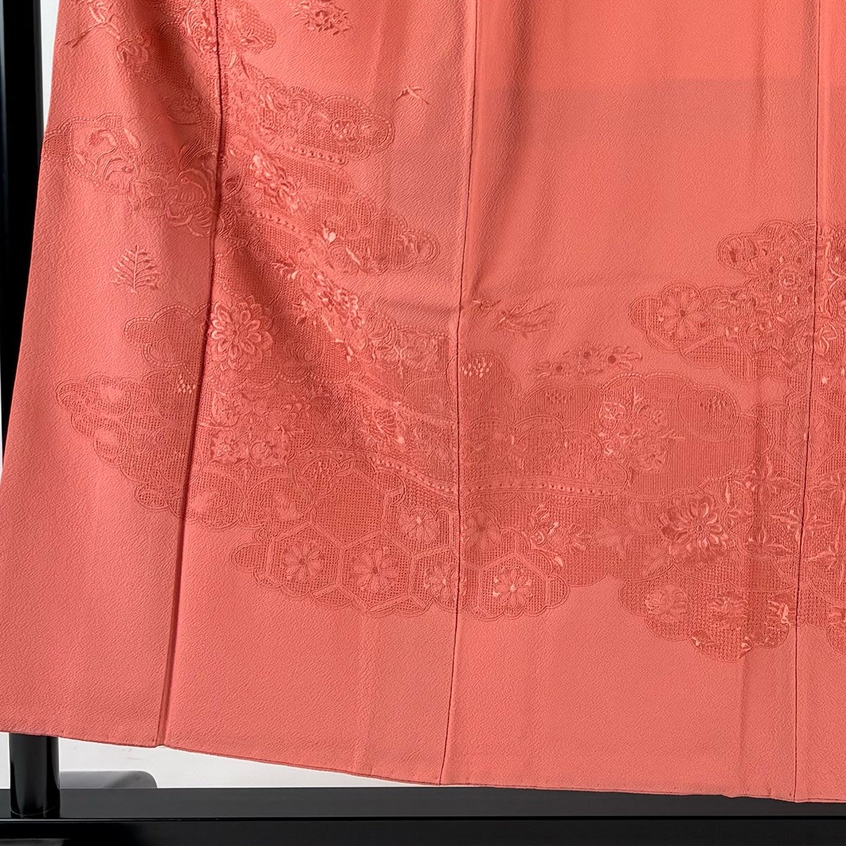 【美品】 小紋 身丈153cm 裄丈66.5cm M 袷 地紋起こし 草花 道長取 ぼかし サーモンピンク 正絹 優品