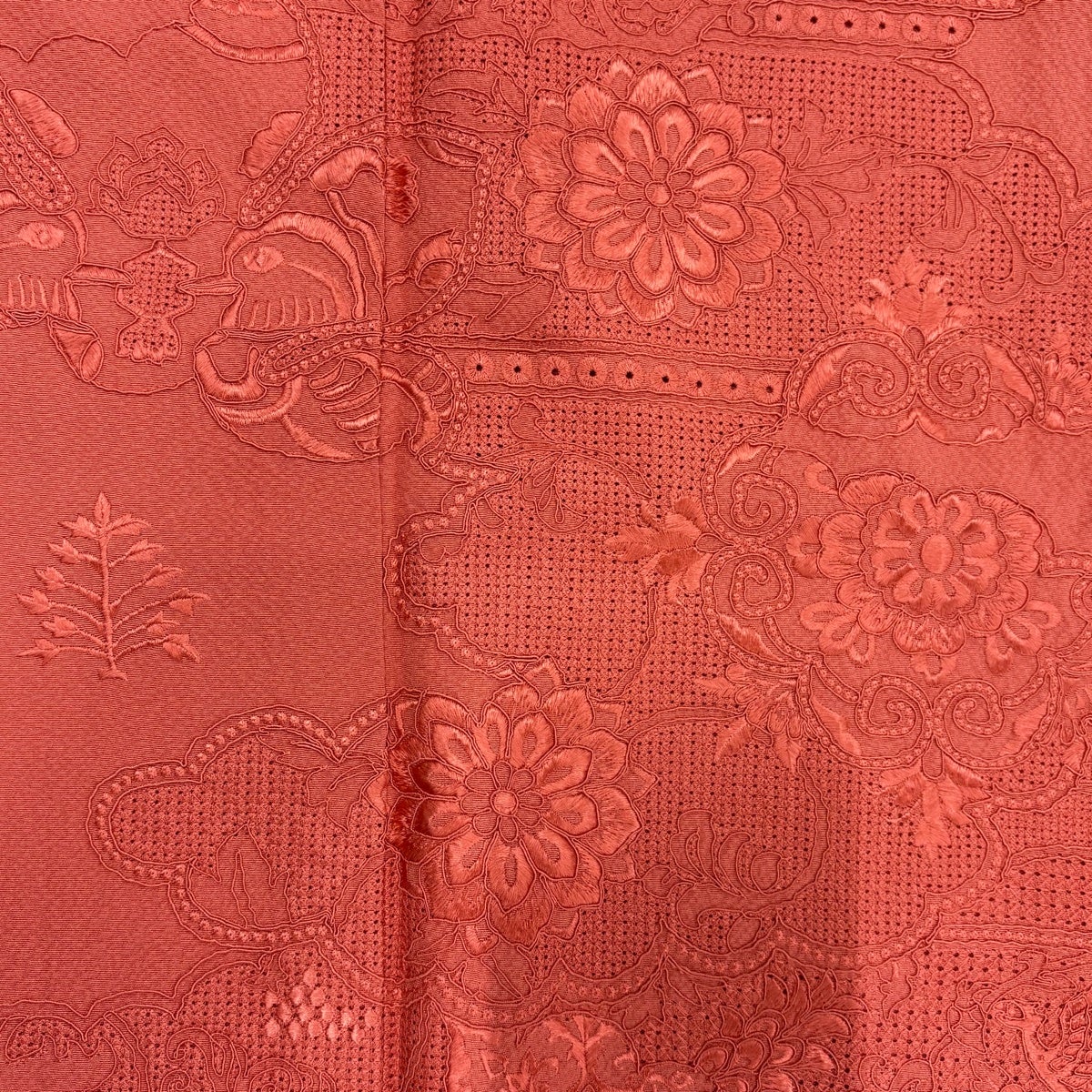 【美品】 道行 身丈84cm 裄丈64.5cm M 和装コート 角衿 扇面 菊 刺繍 ぼかし サーモンピンク 正絹 秀品