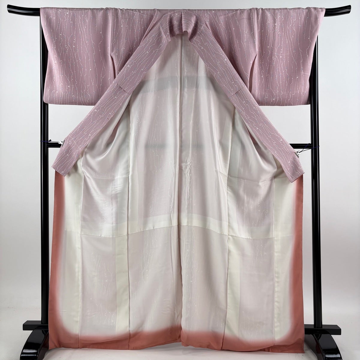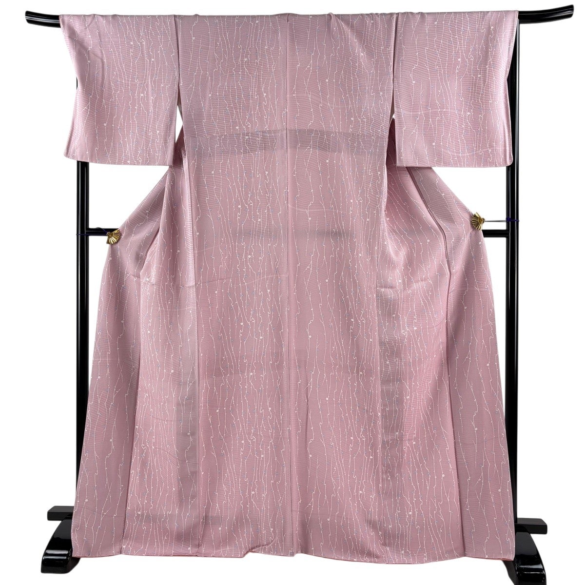 色無地 身丈153cm 裄丈62cm S 袷 地紋 ピンク 正絹 秀品 一つ紋