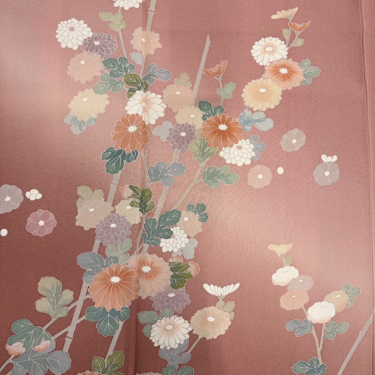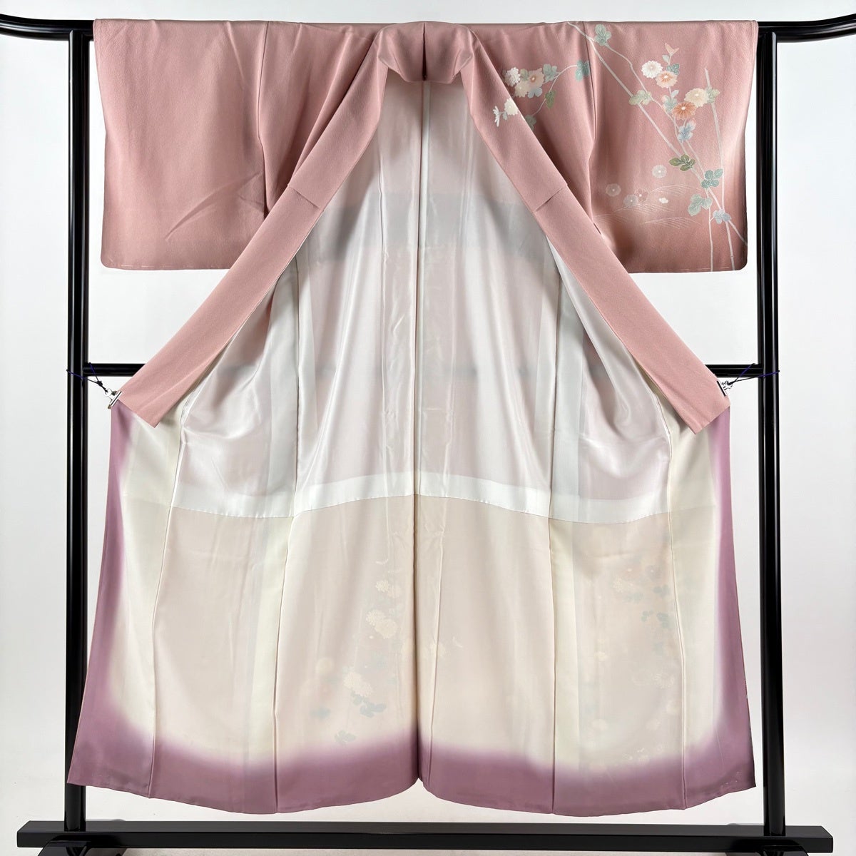 訪問着 身丈165cm 裄丈67cm M 袷 枝花 菊 金彩 ぼかし ピンク 正絹 秀品