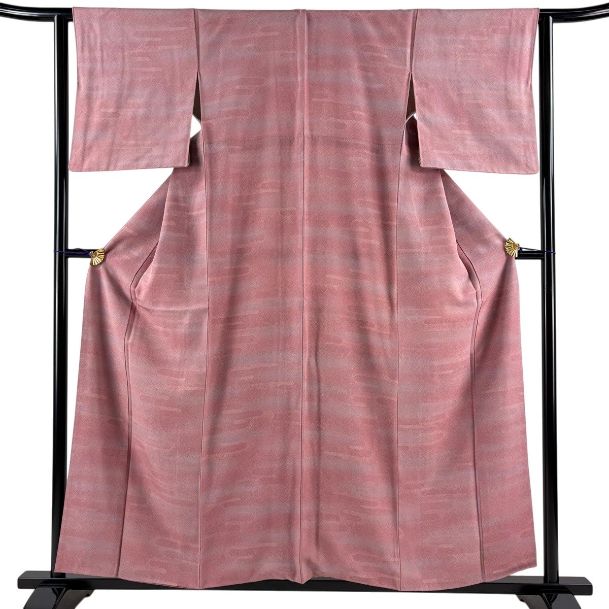 【美品】 色無地 身丈160cm 裄丈63cm S 袷 地紋 ピンク 正絹 優品 一つ紋