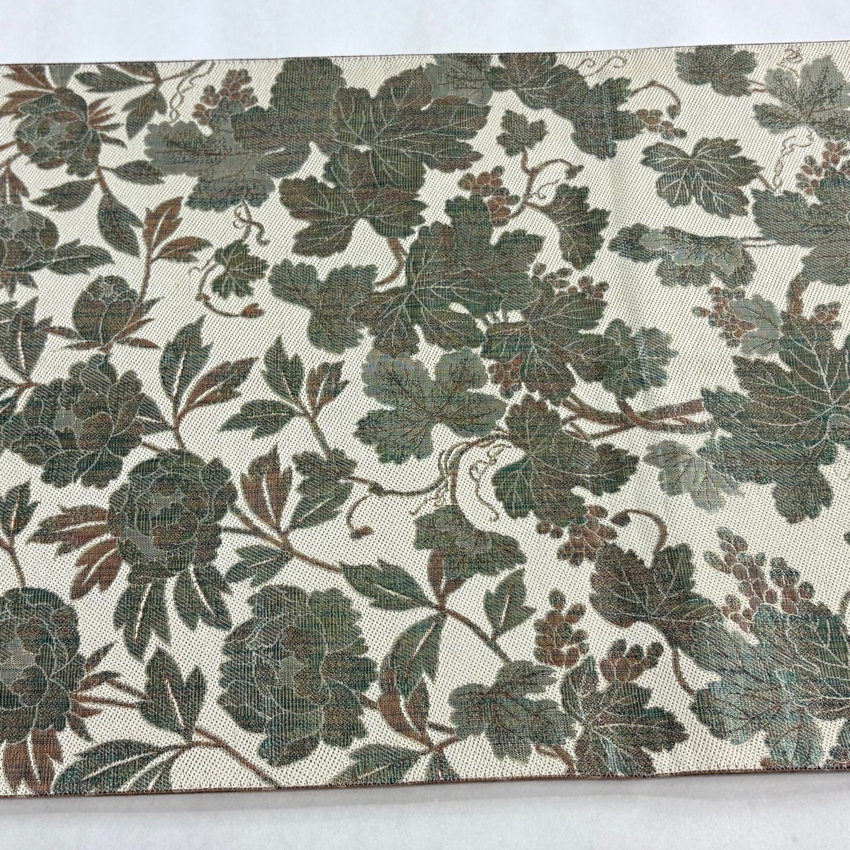 【美品】 名古屋帯 秀品 落款あり 枝花 銀糸 ベージュ 正絹