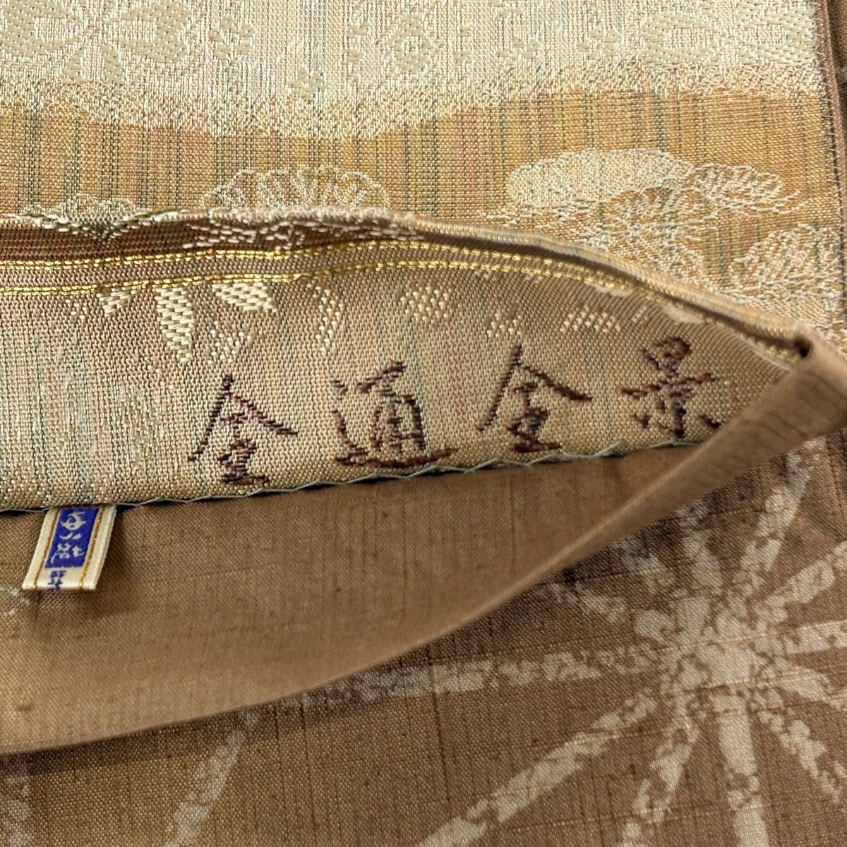 名古屋帯 名品 松葉仕立て 八寸名古屋帯 鶴 松 金銀糸 ベージュ 正絹