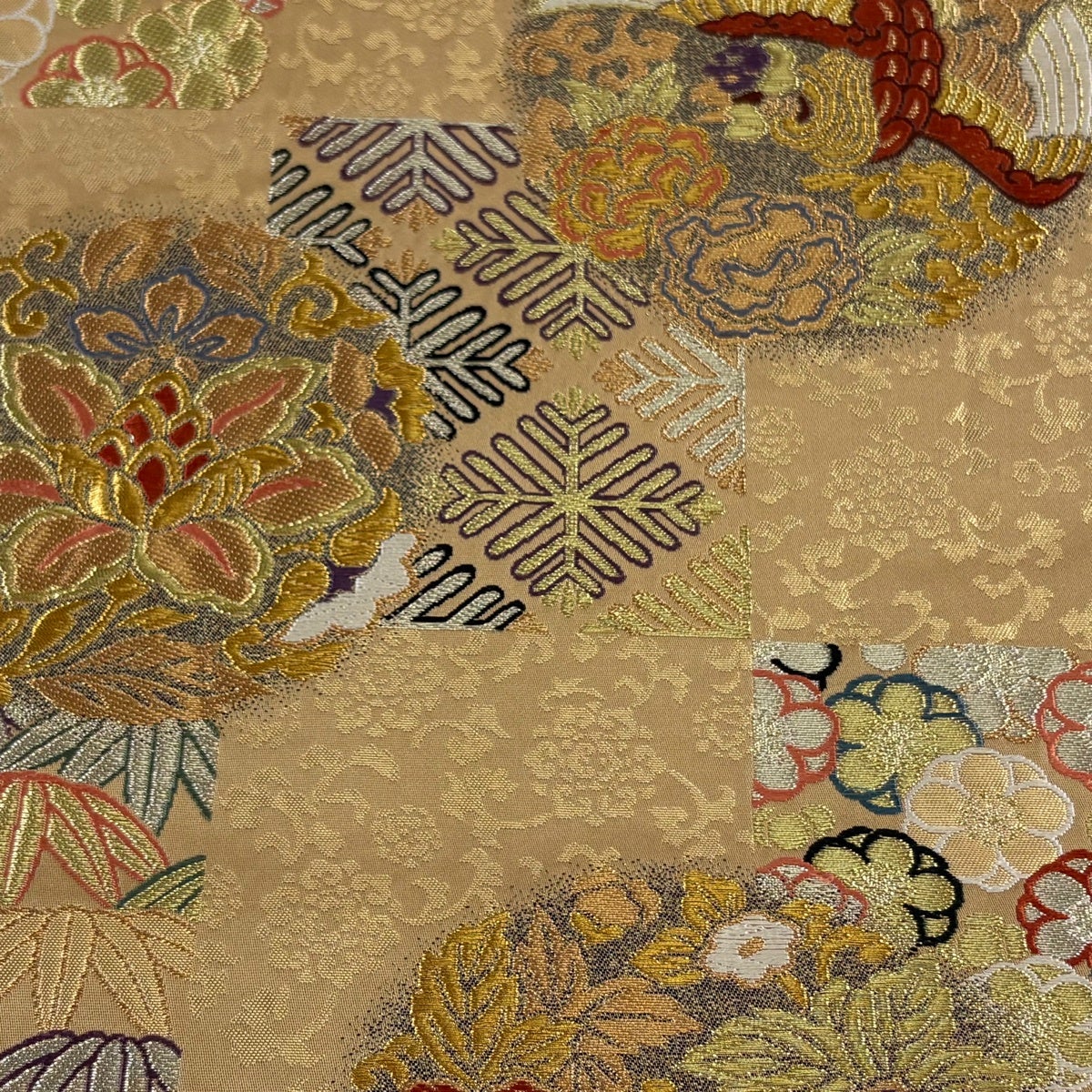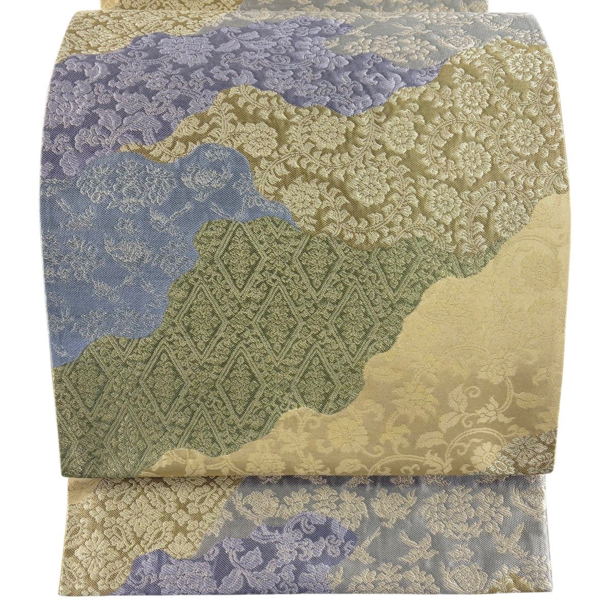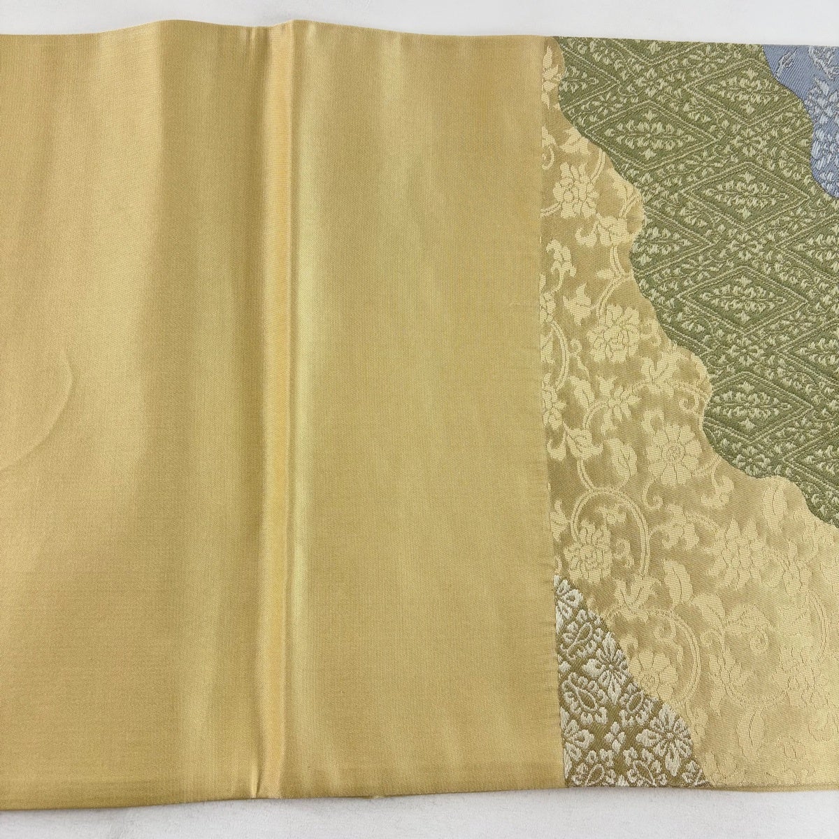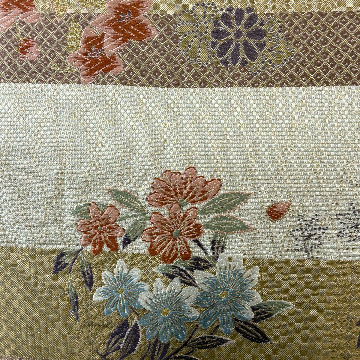 【美品】 袋帯 秀品 花 籠目 金糸 箔 ベージュ 六通 正絹
