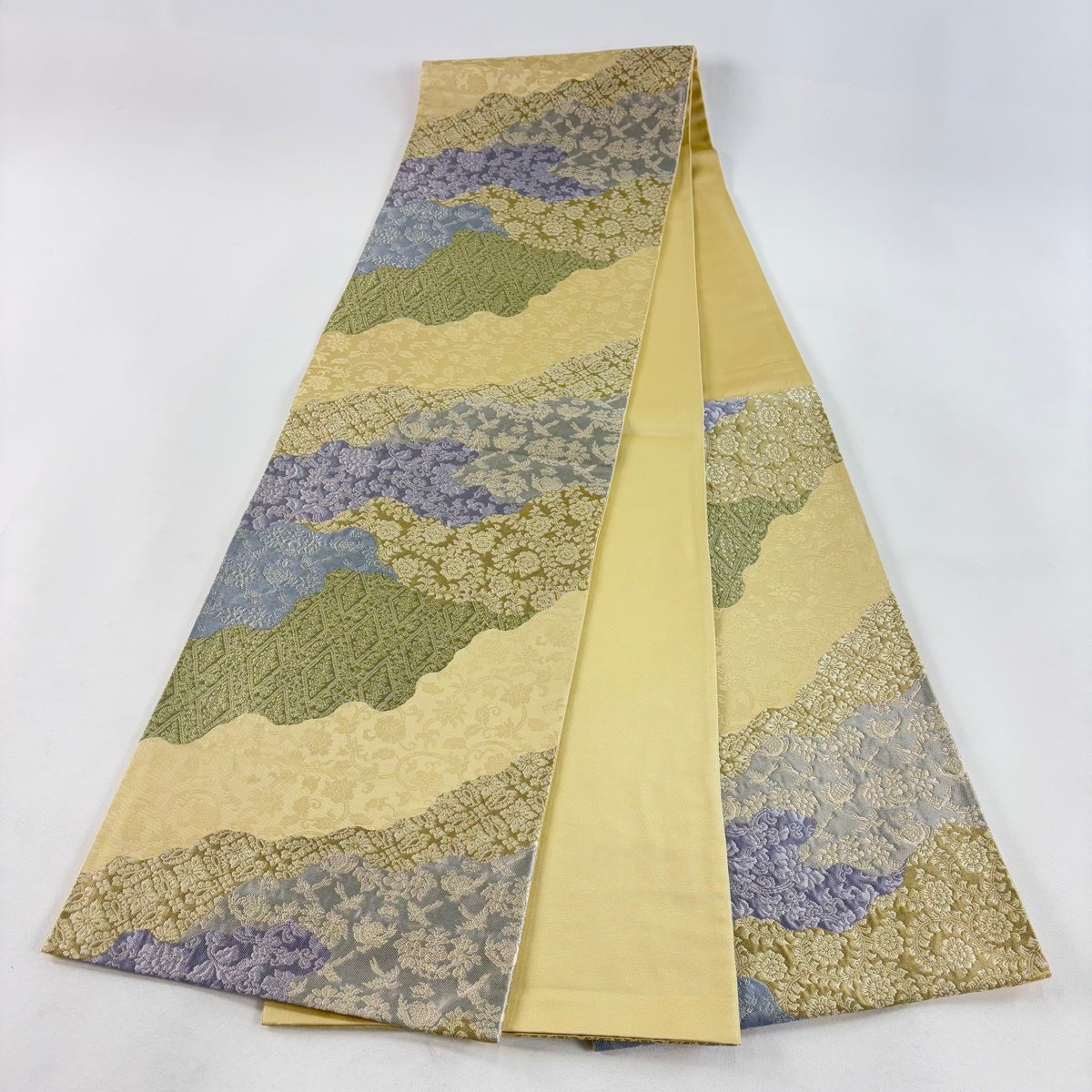 【美品】 袋帯 秀品 流水 箔 金彩 ベージュ お太鼓柄 正絹